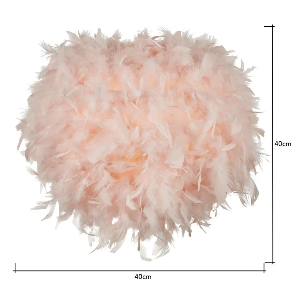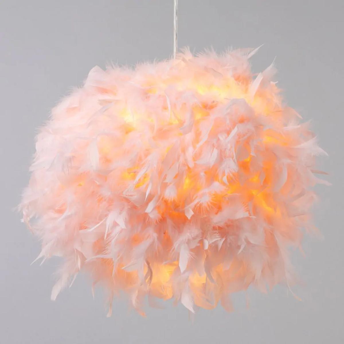 Soft and warm lighting looks for children's rooms with the Feather Easy fit Shade. This Lampshade is covered in a plethora of fluffy pink feathers, looking ideal in pink bedrooms or lighter colour schemes. It also diffuses a warm glow into the room and is ideal for updating any existing pendant light fittings.
