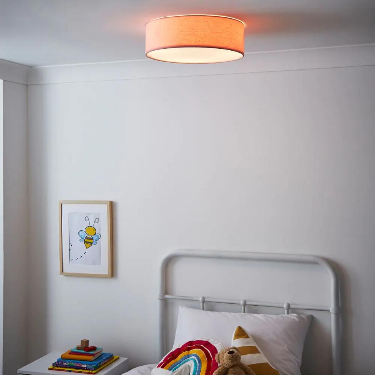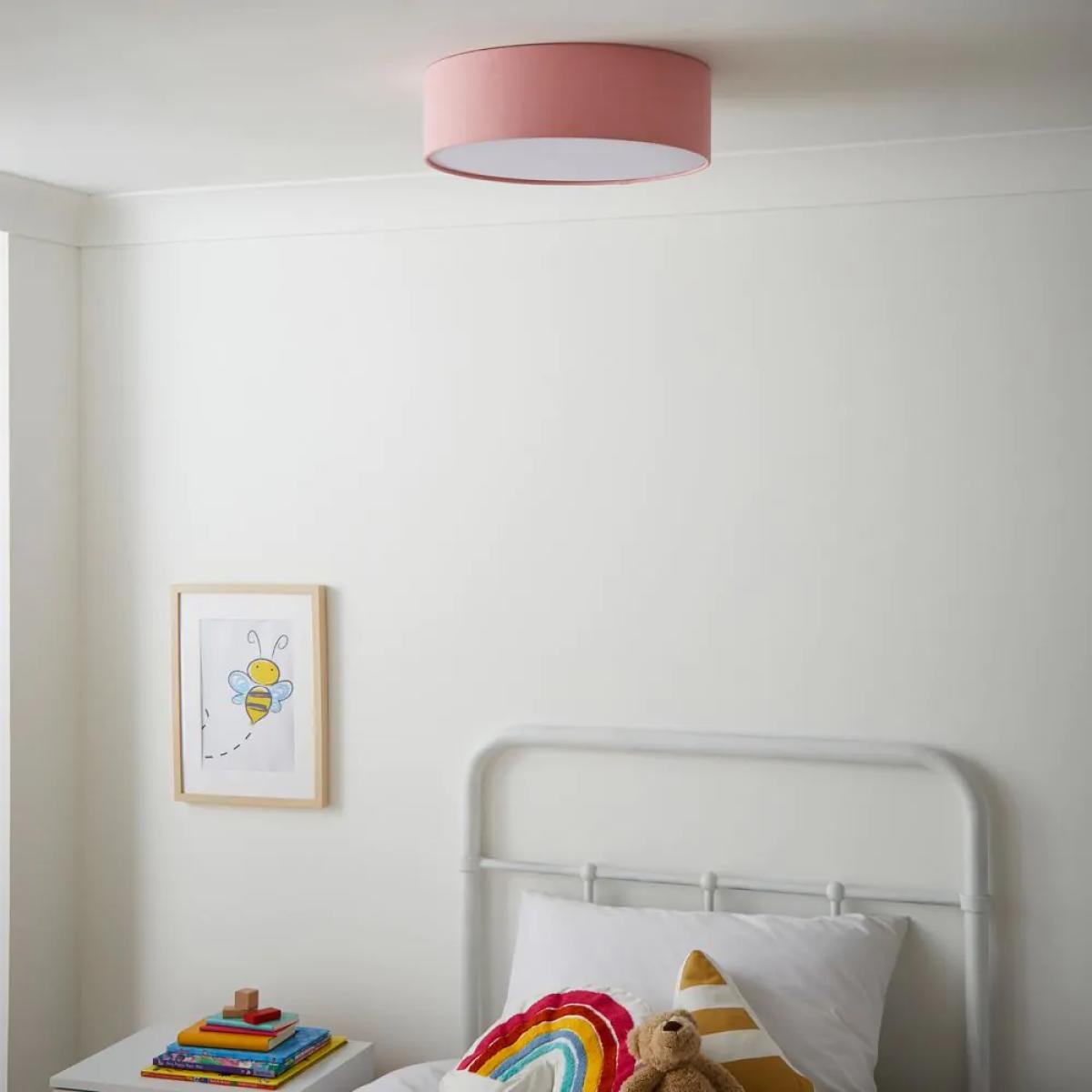 The perfect addition for rooms with low ceilings, this Pink Flush Ceiling Light is ideal for pink or lighter coloured rooms. This flush fitting features a cylindrical design and diffuses a warm toned illumination into the room. With a simplistic design, this flush light is perfect for updating older children's bedrooms.