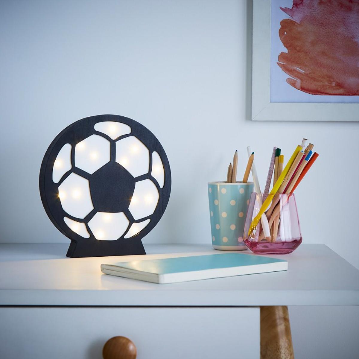 The perfect light for football fans, the Football Light makes a great bedside table lamp. This novelty light is battery operated and features LEDs dotted across it for a retro aesthetic. It also has a black and white finish in the shape of a football, making it ideal for children's bedrooms or playrooms.