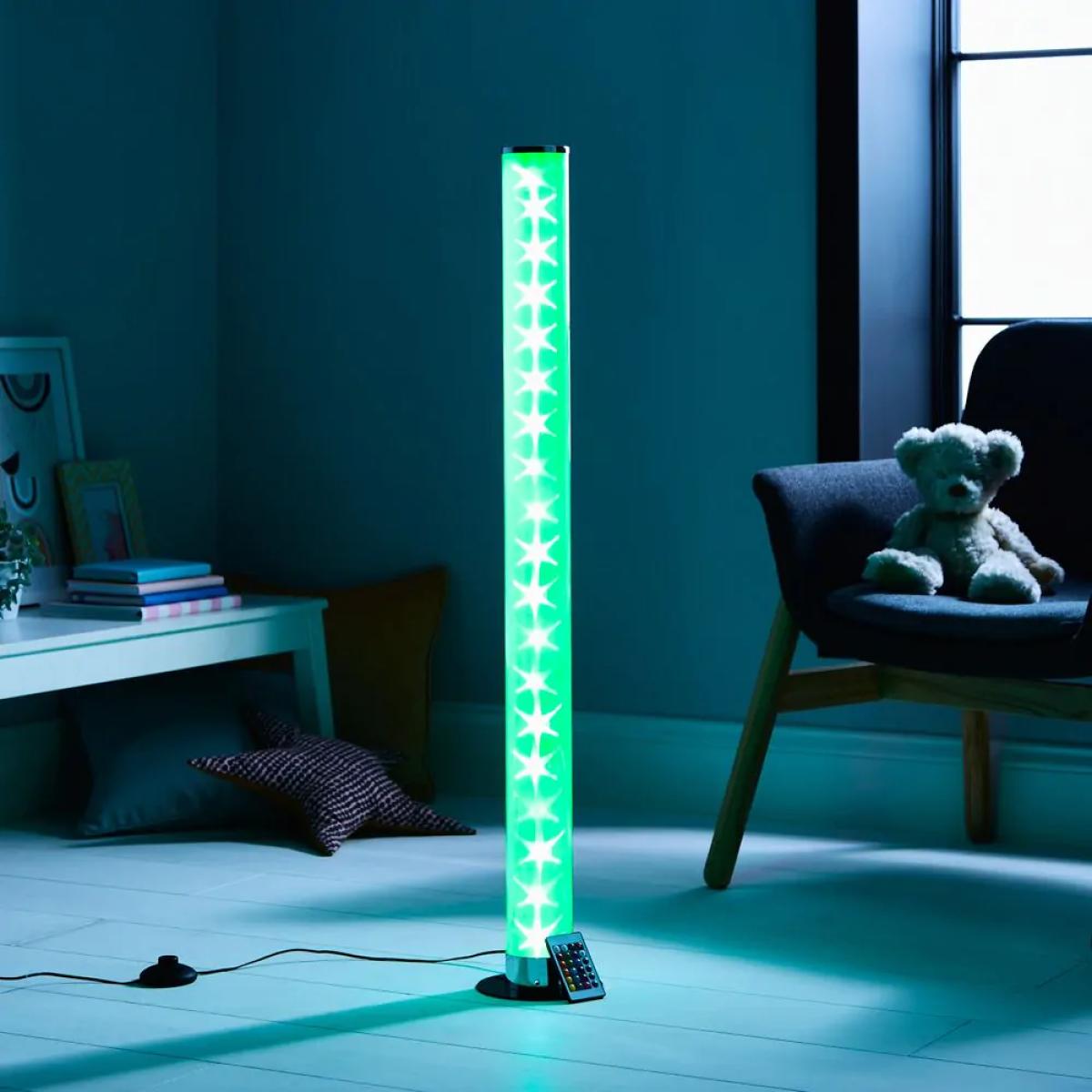 Effectively illuminate your space with the Glow Galaxy Colour Changing LED Cylinder Floor Lamp in Chrome. The slim-line design allows it to sit subtly in any room, without invading much of the floor space. While the chrome finish gives off a stunning high shine aesthetic when the lamp is not in use. Once illuminated this floor lamp is sure to effectively light up your space with a warm glow, while the stunning galaxy pattern is reflected around the room. The colour-changing technology allows you to customise your lighting as and when required with the handy remote control.