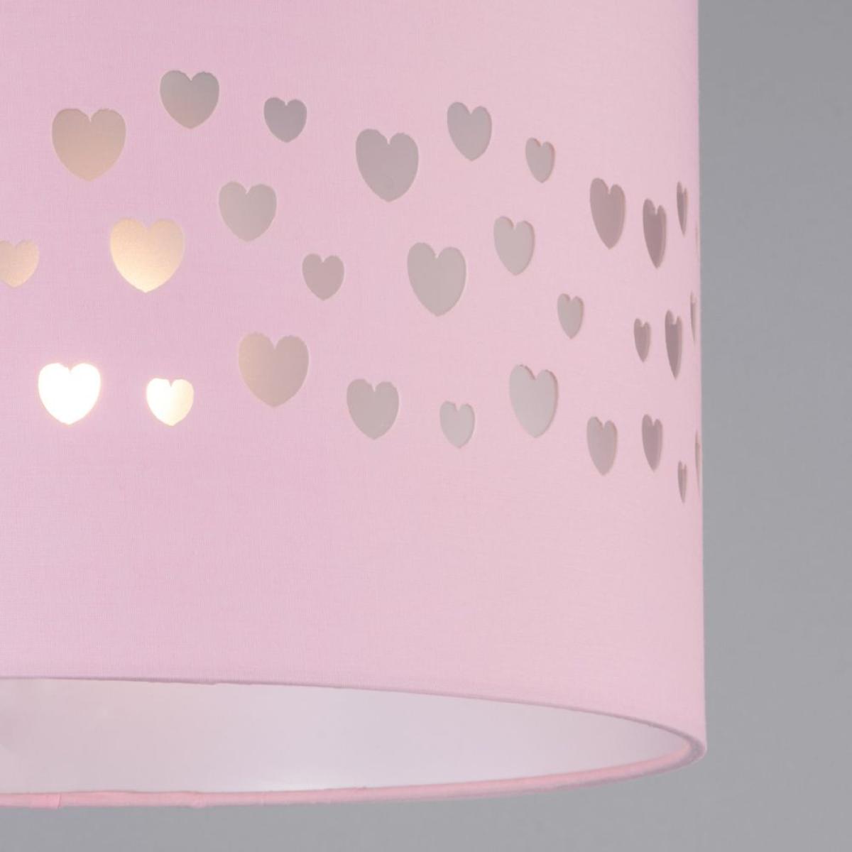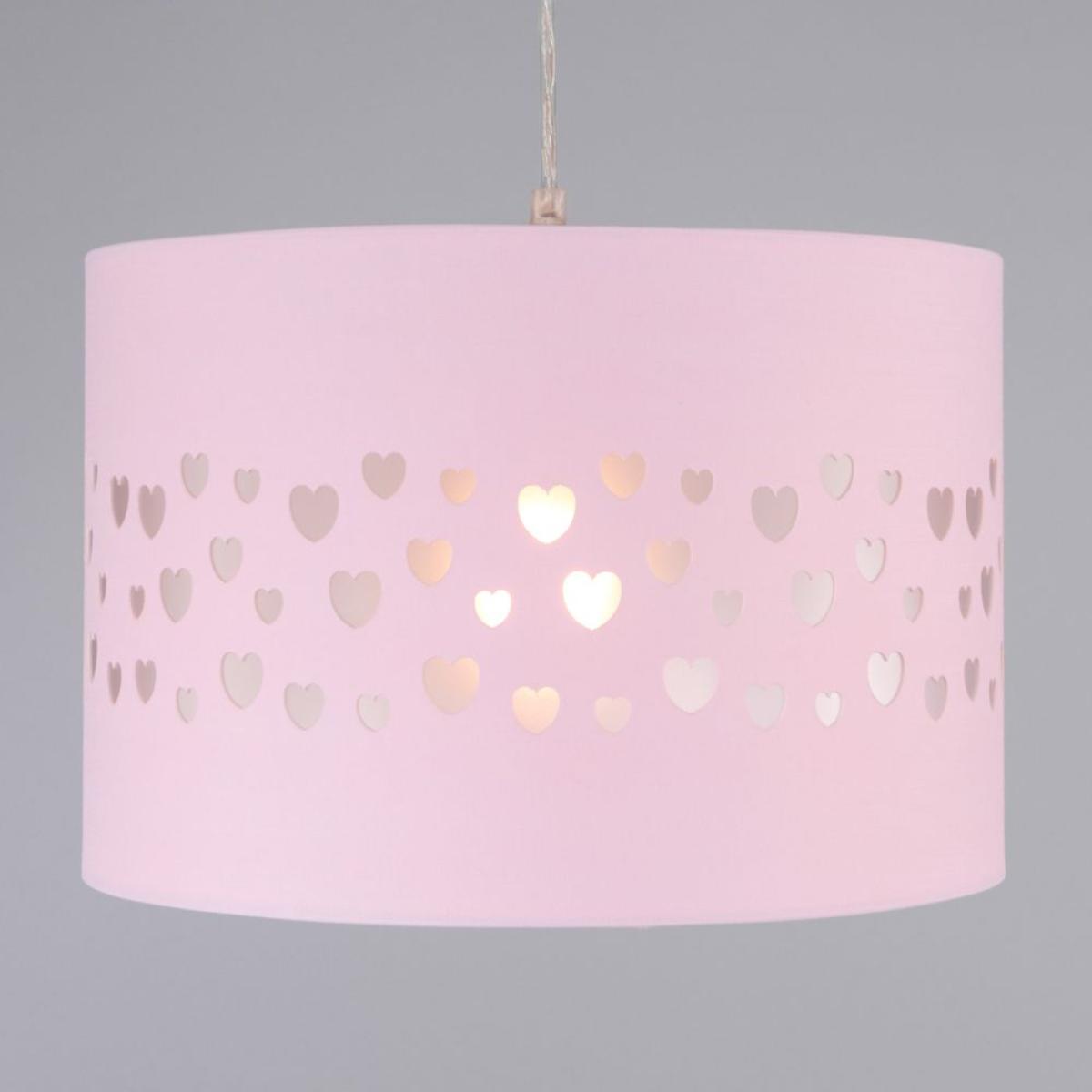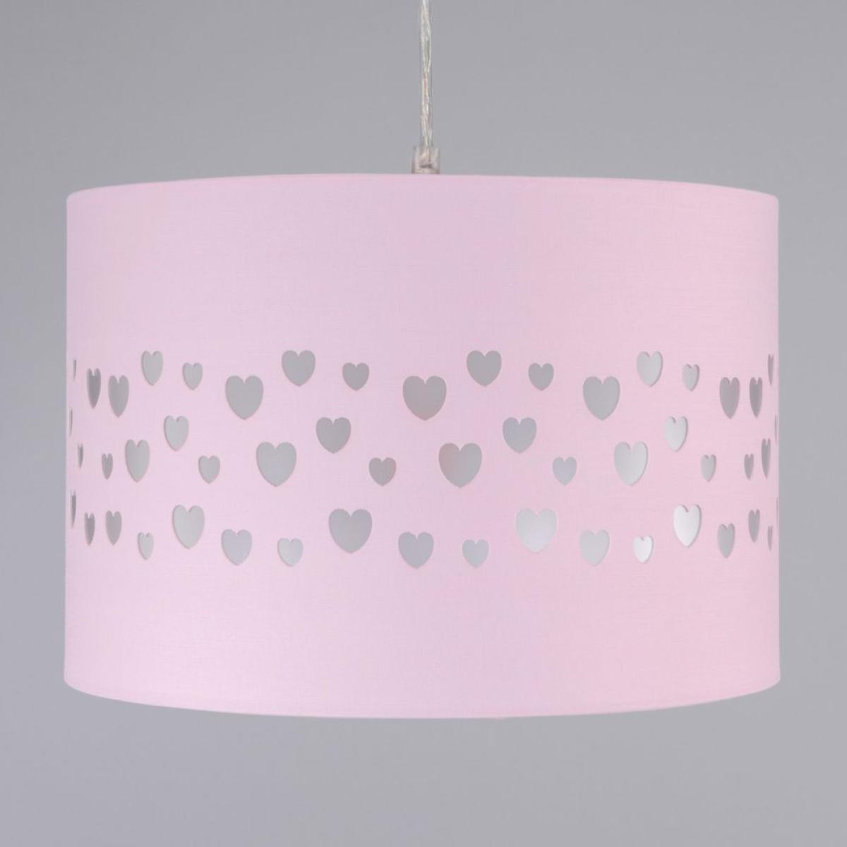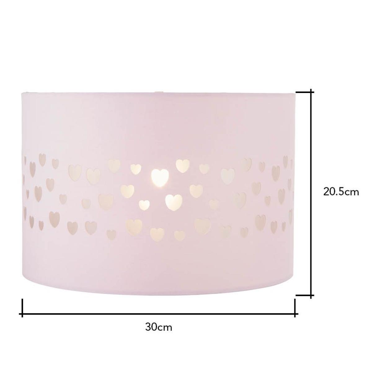 Perfect for pink rooms and lighter colour schemes, the Hearts Light Shade adds a charming look to any kid's bedroom or playroom. This ceiling light shade comes in an adorable pink colour and features a beautiful cut out design allowing for light to be projected across the room in the shape of hearts. This lampshade also has an easy-fit function, allowing it to simply screw onto pre-existing light fittings for a revamp without needing an electrician.