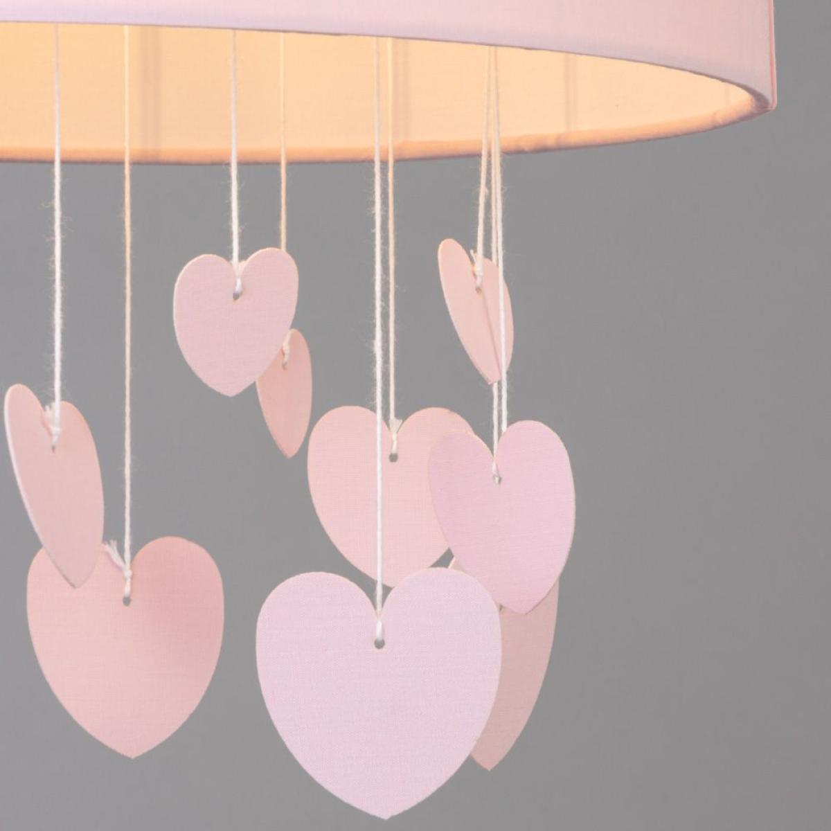 I love this pink mobile shade for its playful yet versatile appeal. It works particularly well in cosy, feminine interiors such as bedrooms, nurseries, or overlooking a reading nook, adding a gentle touch of colour without overwhelming the space. The hanging hearts bring a delicate, whimsical element that pairs perfectly with soft textiles and light wood furnishings. For styling tips, consider balancing its sweetness with more neutral or muted colour schemes. It’s a fantastic choice for adding a pop of colour in a simple, pared-back room or creating a focal point in a monochrome scheme. Keep the surrounding decor minimal to let the shade and the heart details stand out effectively.