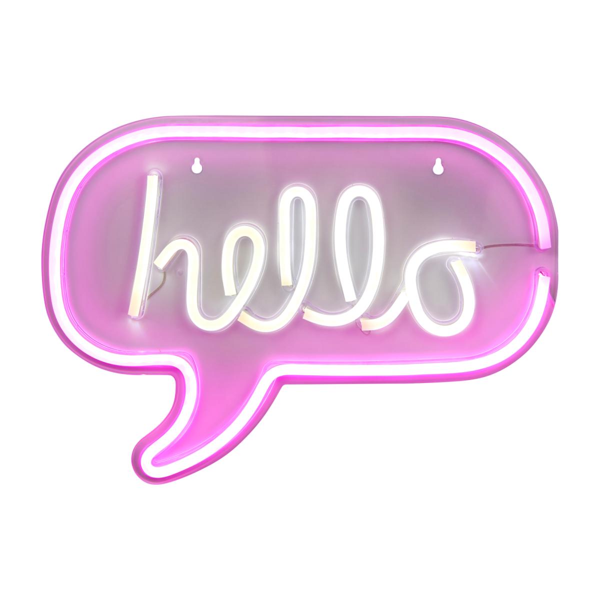 Add a bold accent to your child's bedroom with the Glow Hello Wall Light in Pink. The pink glow of this LED wall lamp adds a gorgeous pop of colour to a neutral or modern themed bedroom or playroom. The hello statement of this neon wall fixture creates a warm and welcoming atmosphere to any room.