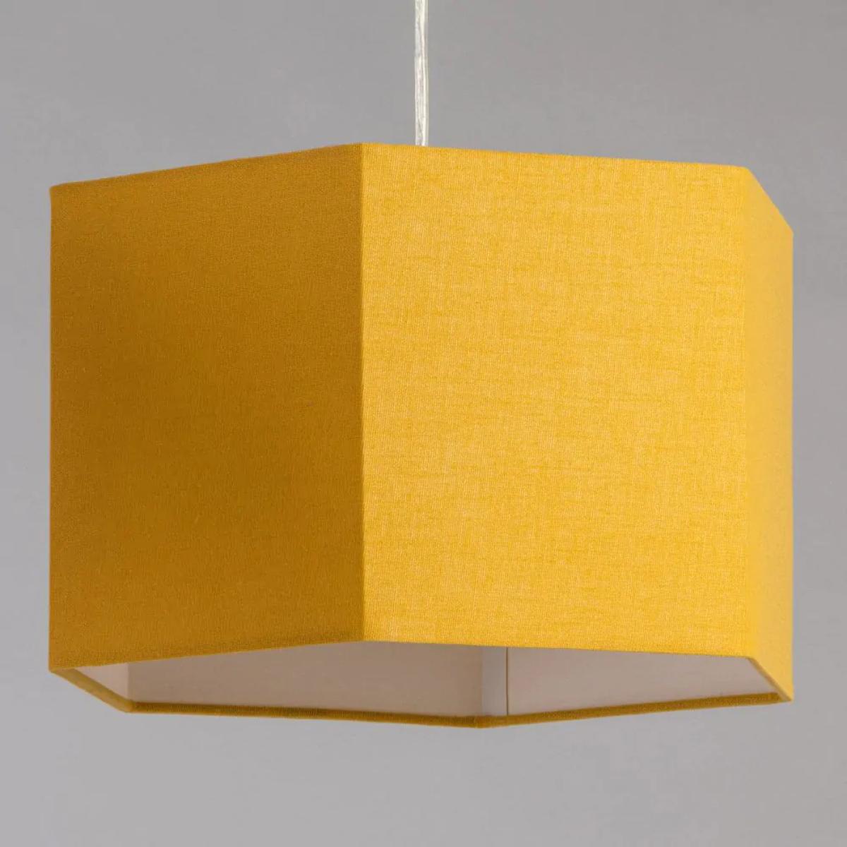 I love this hexagonal shade for its bold geometric shape and warm ochre tone, which adds a welcoming touch to various interiors. It works particularly well in contemporary spaces looking to introduce an element of colour, but can also bring a modern twist to more traditional schemes when paired with natural wood accents or muted palettes. Practical styling tips include hanging it over dining areas for a pop of colour or using multiple in a statement cluster for a more eclectic feel. Its shape and hue make it versatile enough to complement both minimalist and more layered, textured interiors.