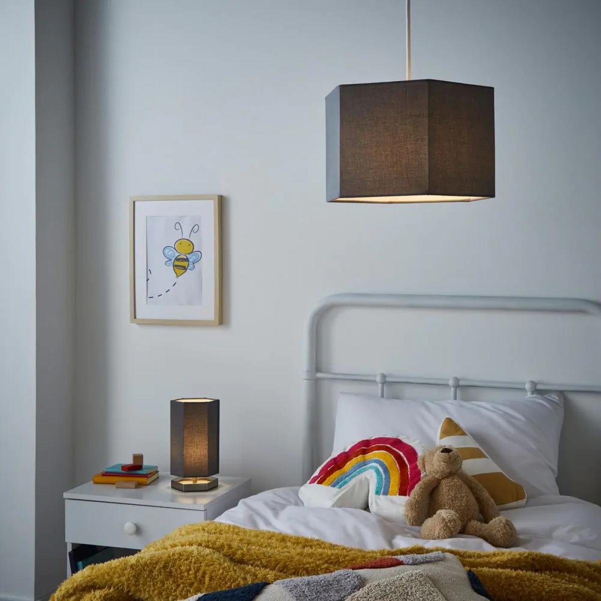 Perfect for gender neutral bedrooms and playrooms, this Hexagon Table Light comes in a grey finish to match any style of room. These table lamps look ideal when styled in pairs on bedside tables, diffusing a warm and calming illumination through the fabric shade. With a simplistic design, this lamp is ideal for older children who want a different bedroom style.