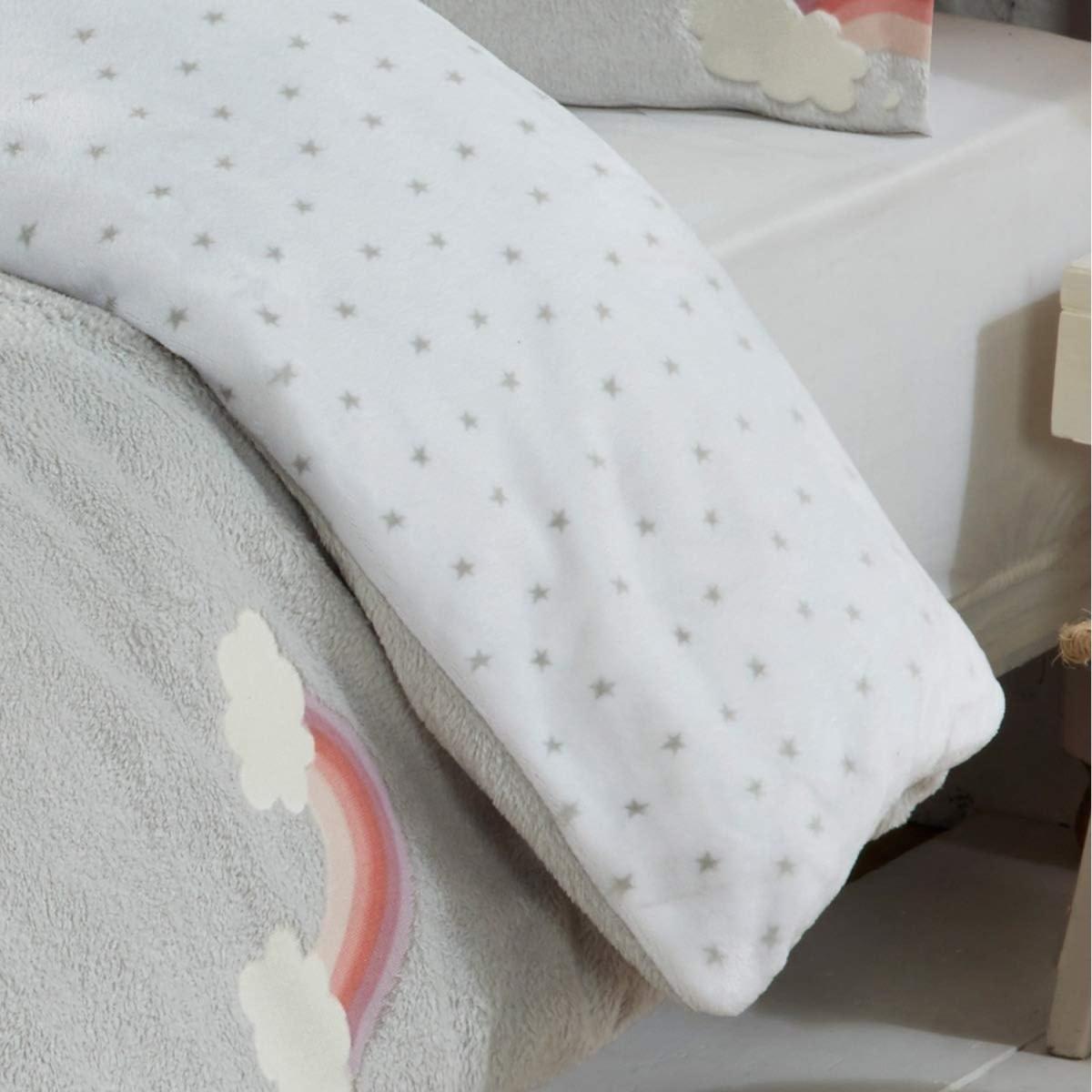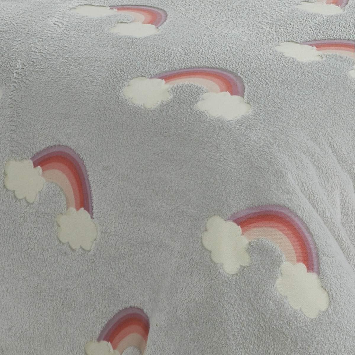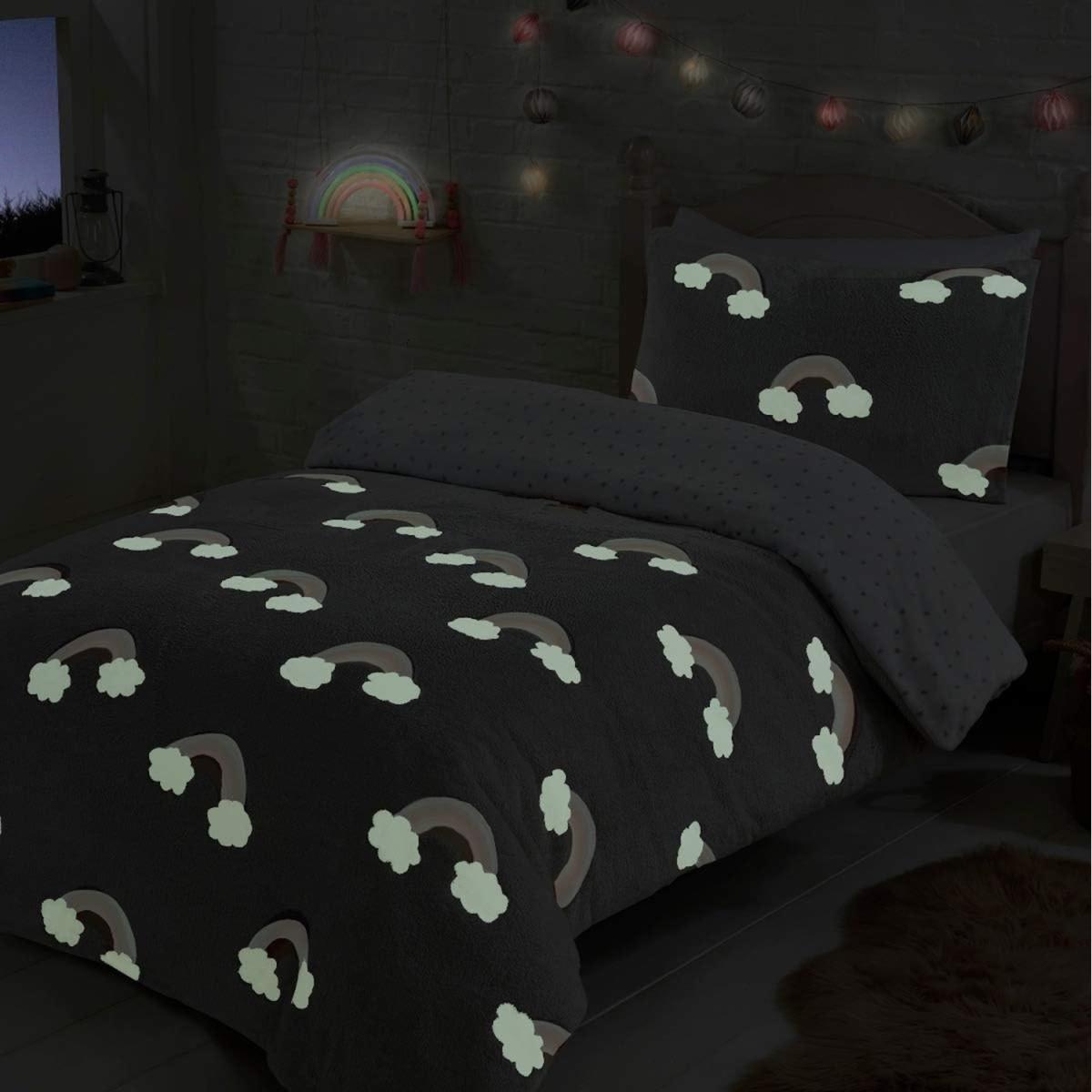Glow In The Dark Rainbow Fleece Duvet Set Childrens Double Bedding - Grey