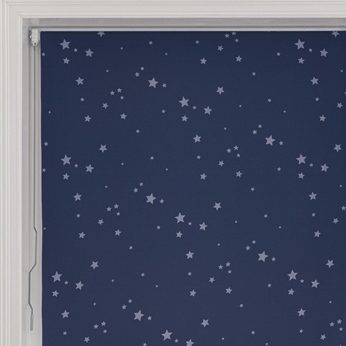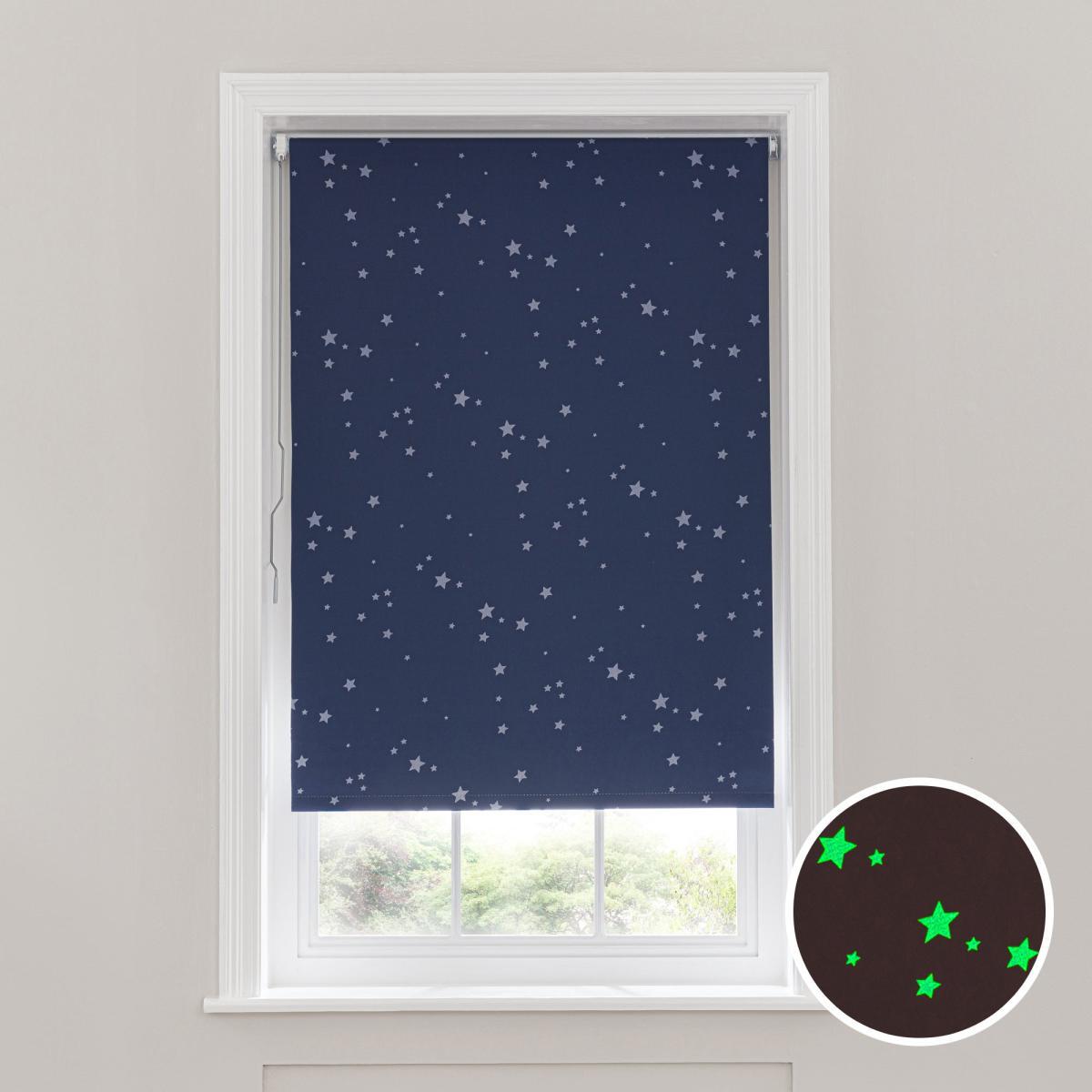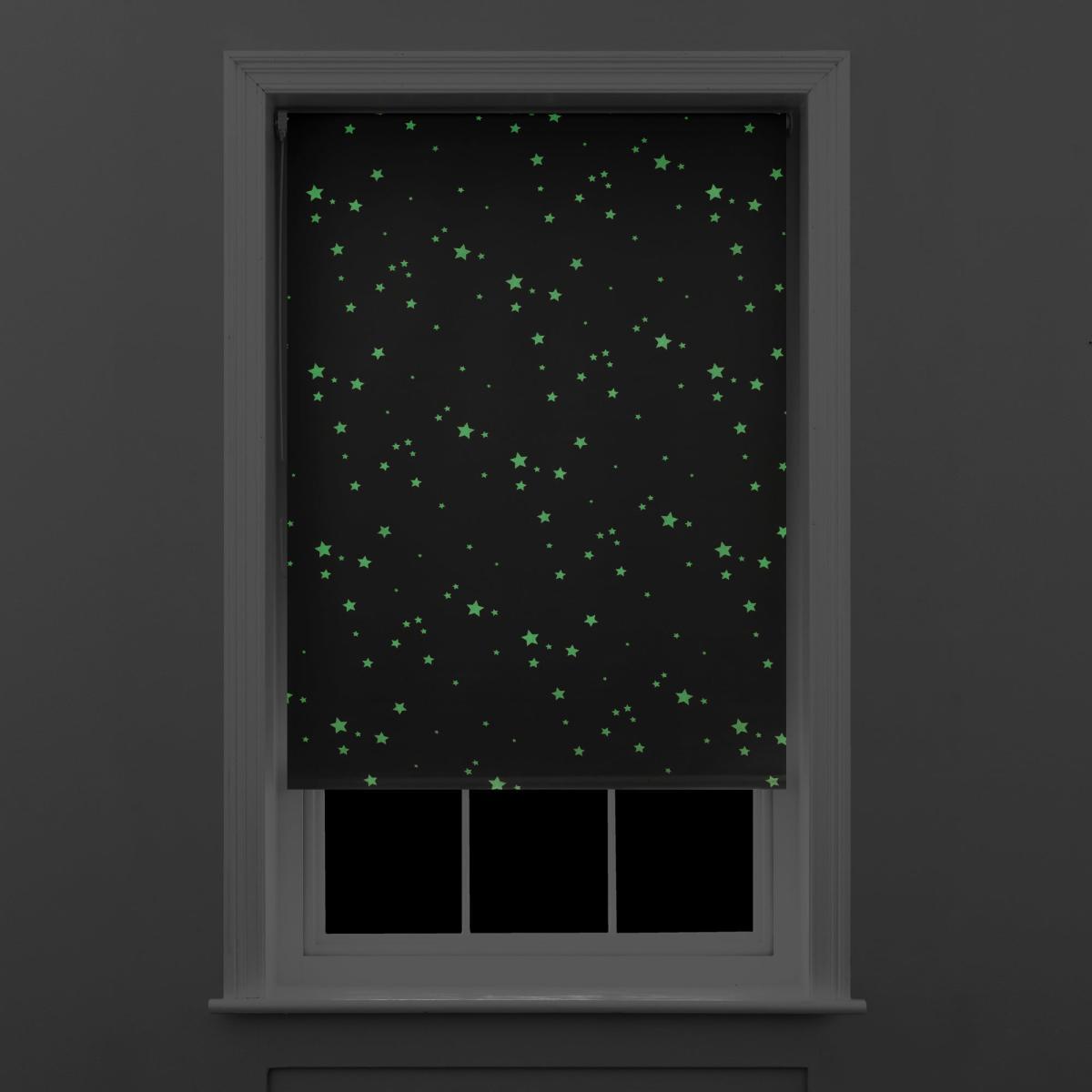 Fashioned with a glow in the dark star pattern, this cordless blackout roller blind will bring a touch of magic to any room by inviting the night sky into your home when the sun goes down. The quality blackout coating prevents unwanted external light from entering your home while improving privacy. Perfect for homes with children and pets, this roller blind is designed with a cordless twist safe mechanism for added peace of mind and simple operation. This charming blind is available in a variety of widths and can be cut to size to suit your requirements. Supplied with all fixings included. Please note: The width stated is for the fabric only, please allow an extra 3. 2cm for the brackets and mechanism. Always check specific fitting instructions and check measurements for your blind once purchased before cutting to size. To see instructions, please click. Here.