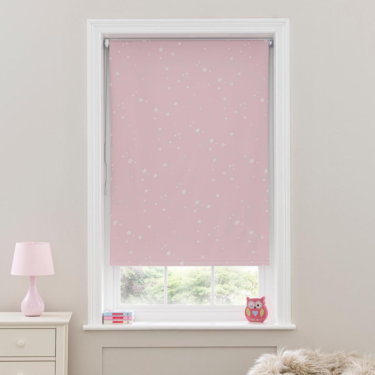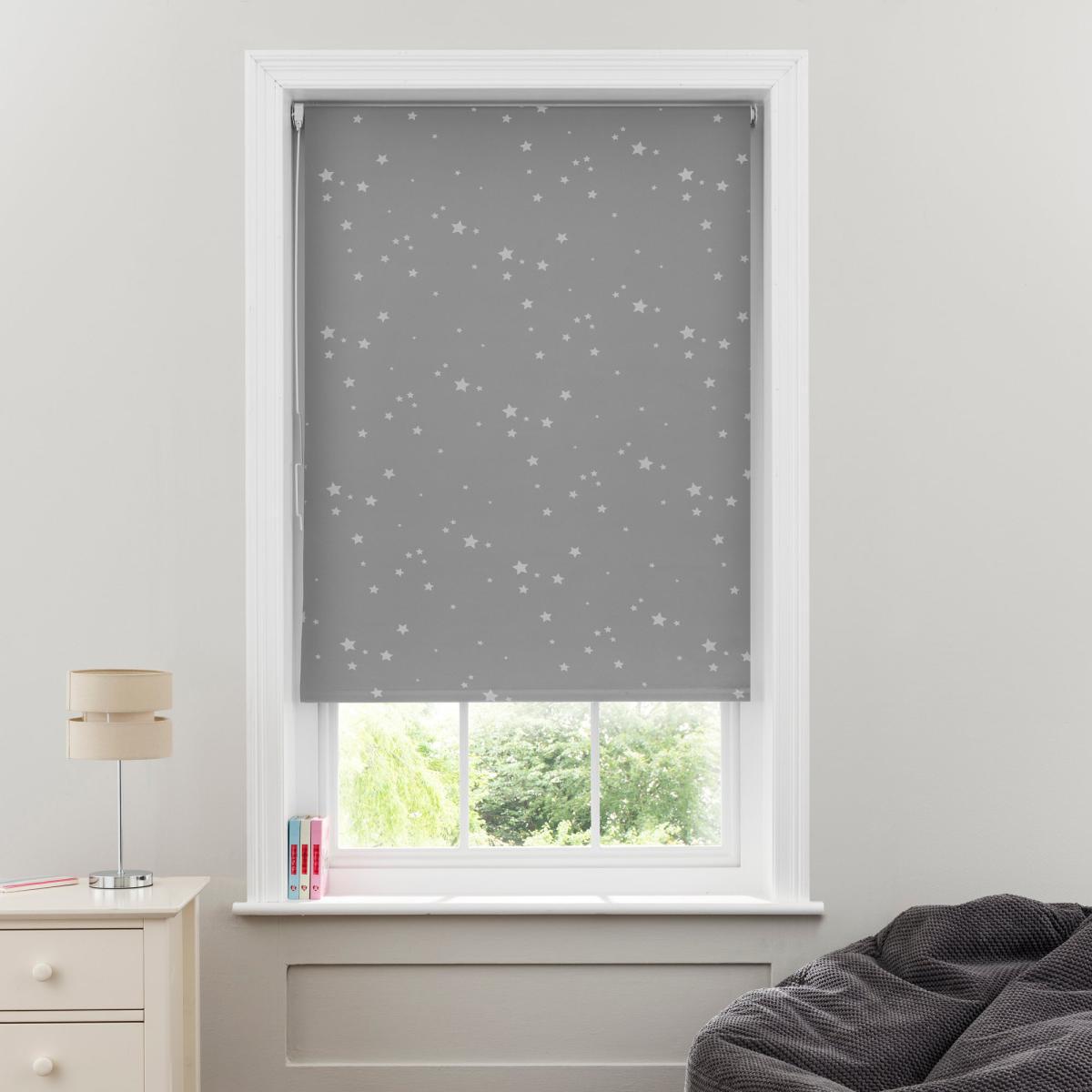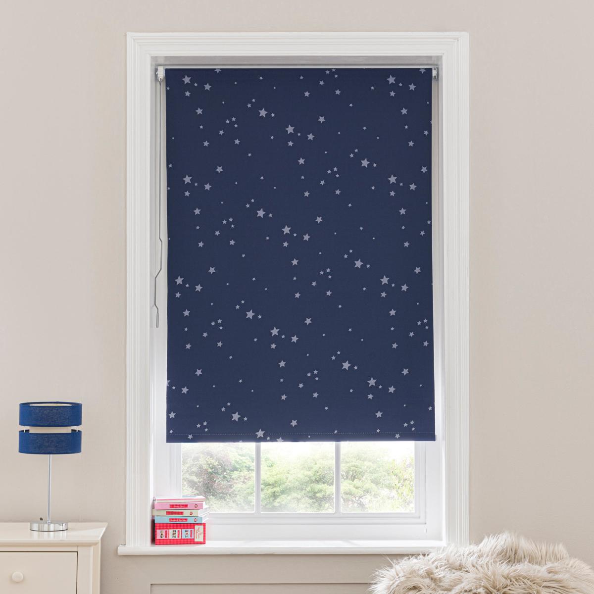 Fashioned with a glow in the dark star pattern, this cordless blackout roller blind will bring a touch of magic to any room by inviting the night sky into your home when the sun goes down. The quality blackout coating prevents unwanted external light from entering your home while improving privacy. Perfect for homes with children and pets, this roller blind is designed with a cordless twist safe mechanism for added peace of mind and simple operation. This charming blind is available in a variety of widths and can be cut to size to suit your requirements. Supplied with all fixings included. Please note: The width stated is for the fabric only, please allow an extra 3. 2cm for the brackets and mechanism. Always check specific fitting instructions and check measurements for your blind once purchased before cutting to size. To see instructions, please click. Here.