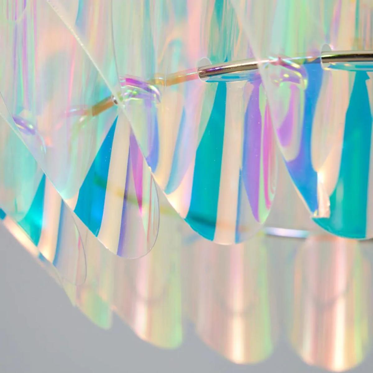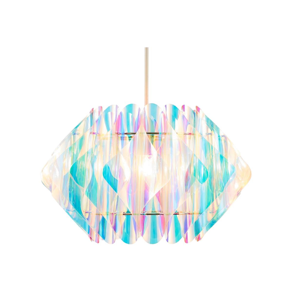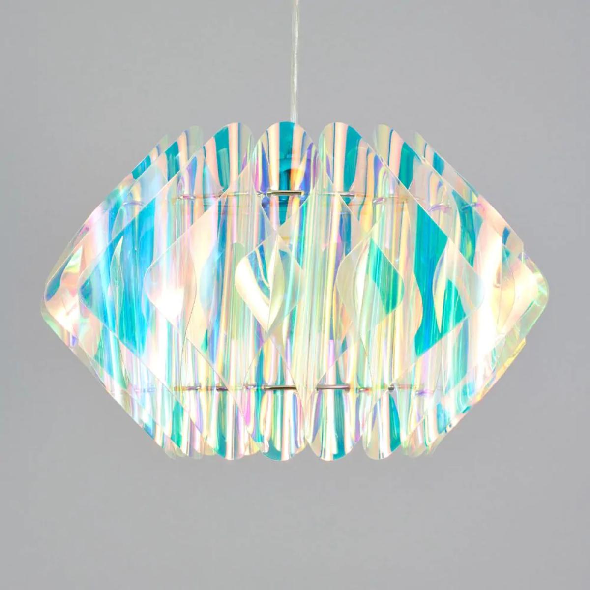 Elevate your home decor with our Glow Landon Easy Fit Shade in Iridescent. It's the perfect choice to create a statement and add a touch of personality to any room. This stunning easy to fit lampshade is designed to be a trendy and eye-catching addition to your home decor. This unique shade features an iridescent finish that adds a touch of modernity and elegance to a room. Easy to install, simply attach it to your existing ceiling fitting for an instant style update, without needing to hard-wire the light or require an electrician.
