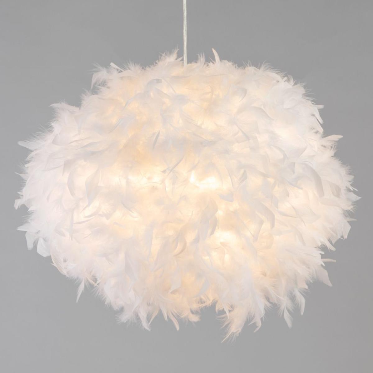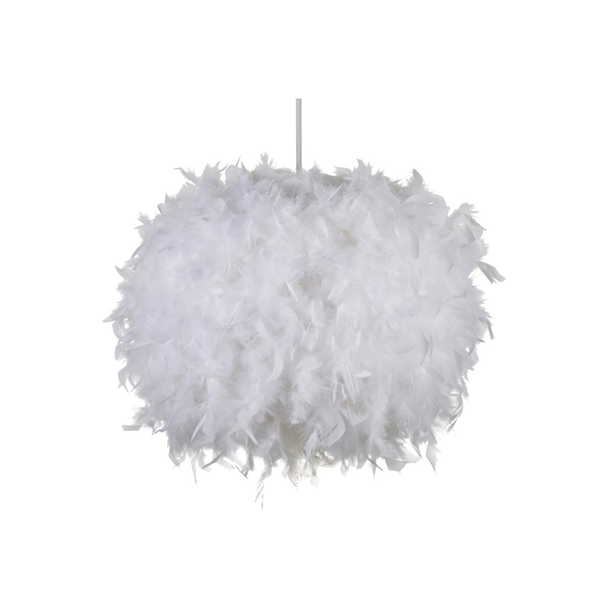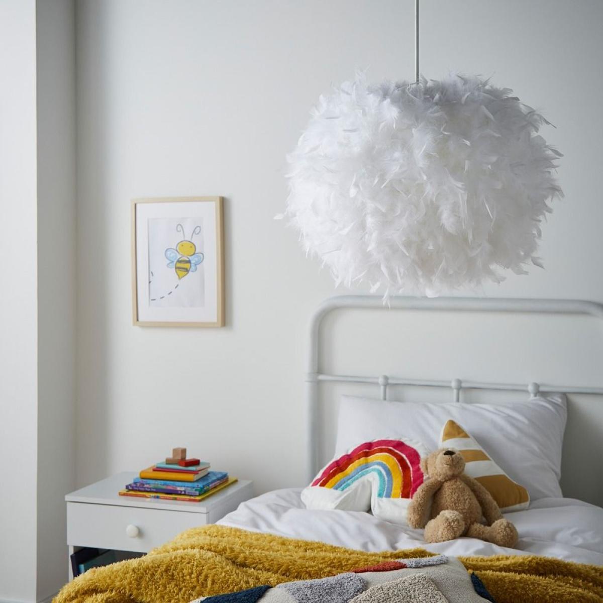 Add a fun look to your child's bedroom or playroom with the Larger Feather Shade. This light shade is covered in a plethora of fluffy white feather, making it soft and child-friendly. Easy fit shades are perfect for adding a quick DIY revamp to a room as there is no electrician required to fit it.