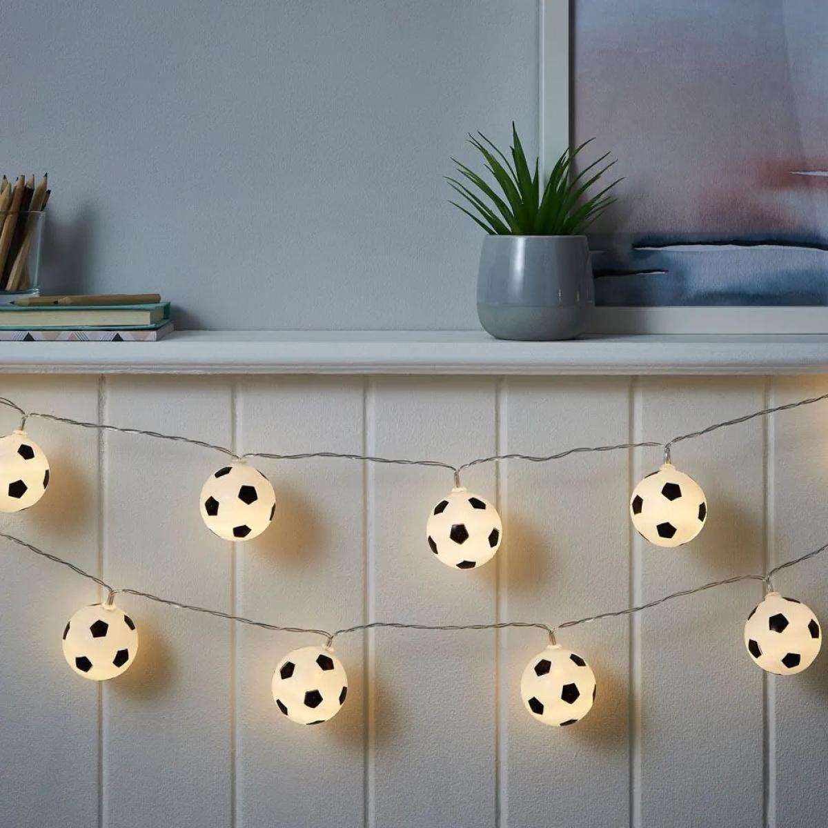 Illuminate your space with our Glow LED Football String Lights, the perfect addition for football enthusiasts and sports lovers alike. These charming string lights feature miniature football-shaped bulbs that create a playful and vibrant atmosphere in any room. Hang them in your bedroom or game room to celebrate your love for the beautiful game. Whether you're hosting a game night or simply adding a touch of sports-inspired decor, these lights will bring a lively ambience to any occasion.