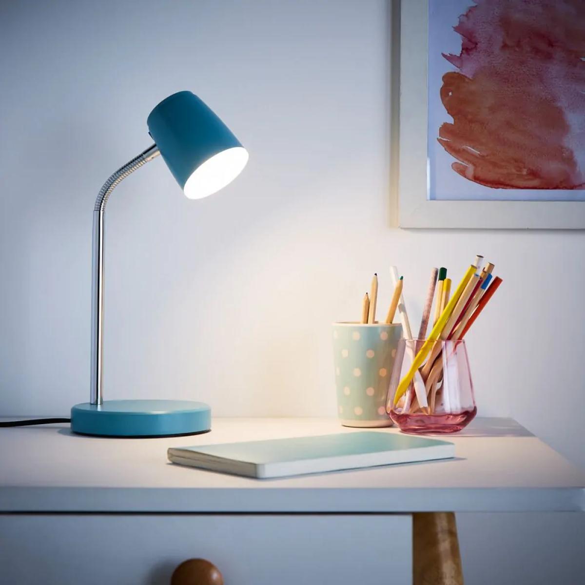 Get a matching lighting look for blue rooms or darker colour schemes with the LED Task Lamp in blue. This table light is ideal for school age children, projecting an effective illumination over any homework or school projects. With an adjustable head you can also direct the light in any position of your choosing for the best visibility.