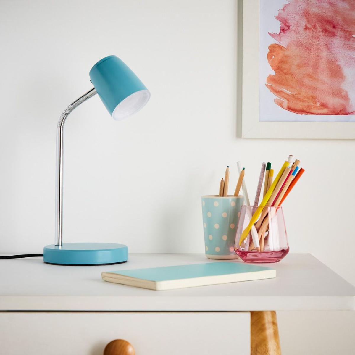 Get a matching lighting look for blue rooms or darker colour schemes with the LED Task Lamp in blue. This table light is ideal for school age children, projecting an effective illumination over any homework or school projects. With an adjustable head you can also direct the light in any position of your choosing for the best visibility.