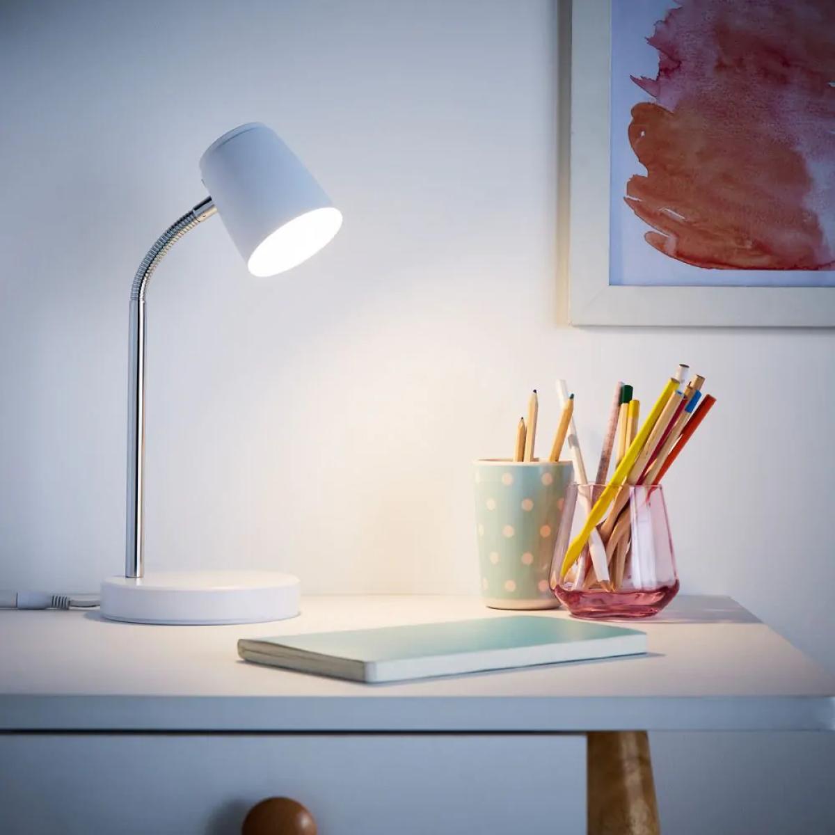 Ideal for school age children, the LED Task Lamp is perfect as a desk light. This table lamp comes in a white finish that fits with any style of room and all colour schemes. It also features an adjustable head which can be positioned to direct light at any homework or other school projects.