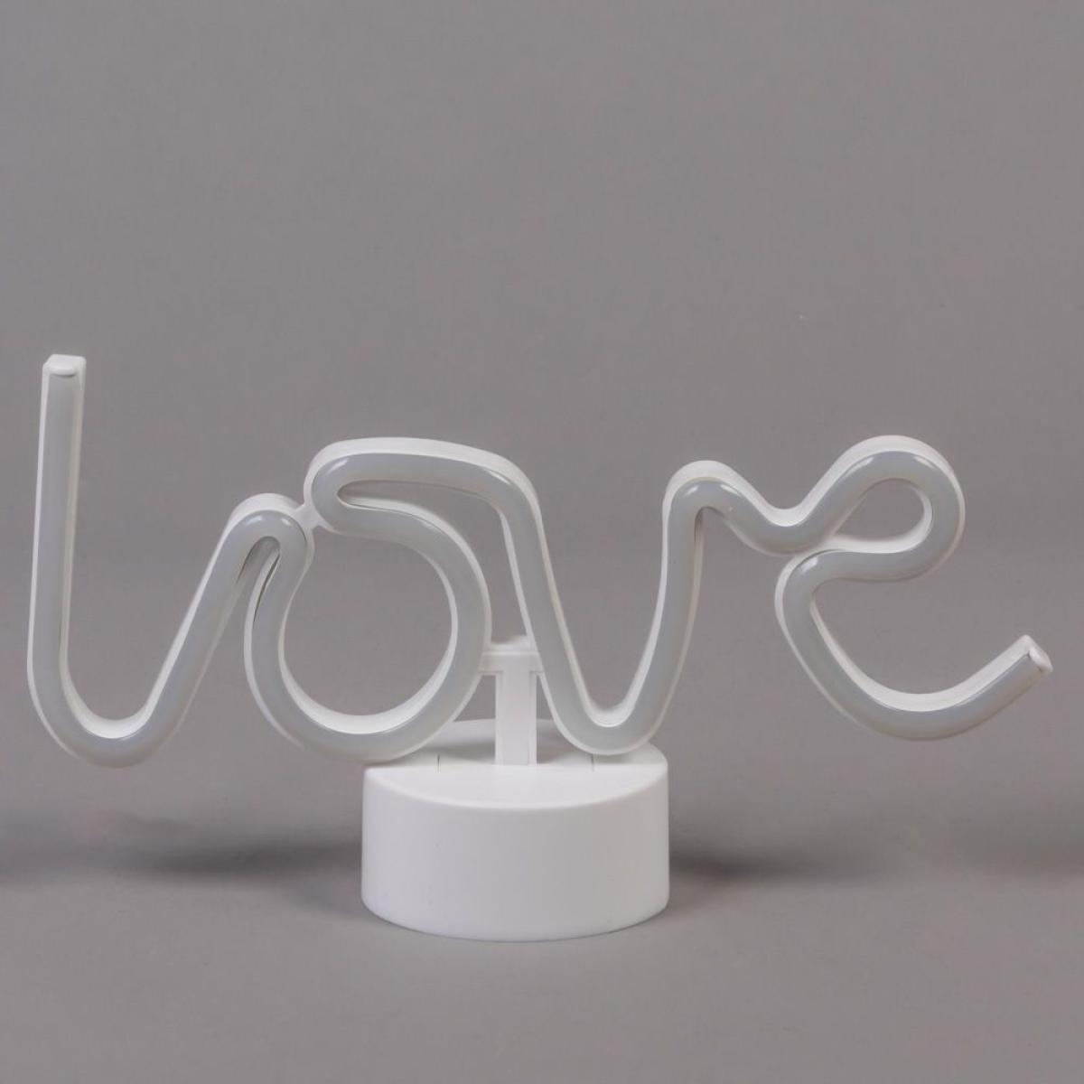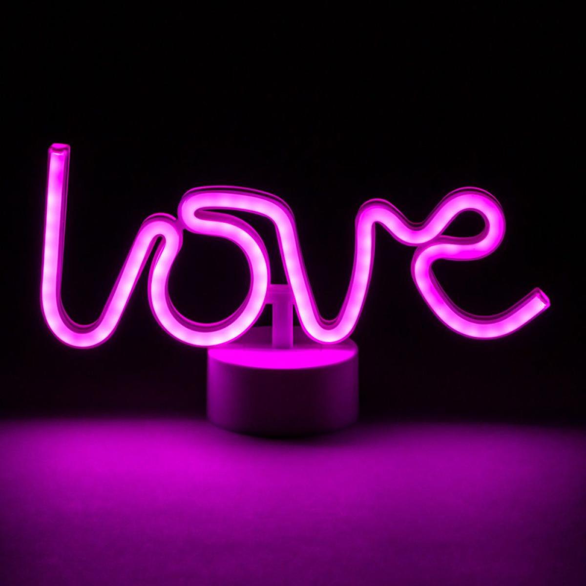 Adorable fluorescent lighting styles for children's rooms with the Love Neon Table Lamp. This table lamp features a creative cursive writing design and glows bright pink when switched on for a vibrant appearance. It is also battery operated and LED integrated, meaning that your batteries last longer due to energy efficient lighting.