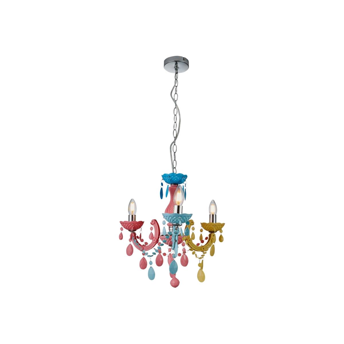 Add a quirky and unique look to your children's bedroom with the Marie Funky 3 Light Chandelier. This chandelier comes in various pastel colours for a colourful and vibrant appearance. This chandelier also features a height adjustable chain and decorated with beautiful crystal effect droplets.