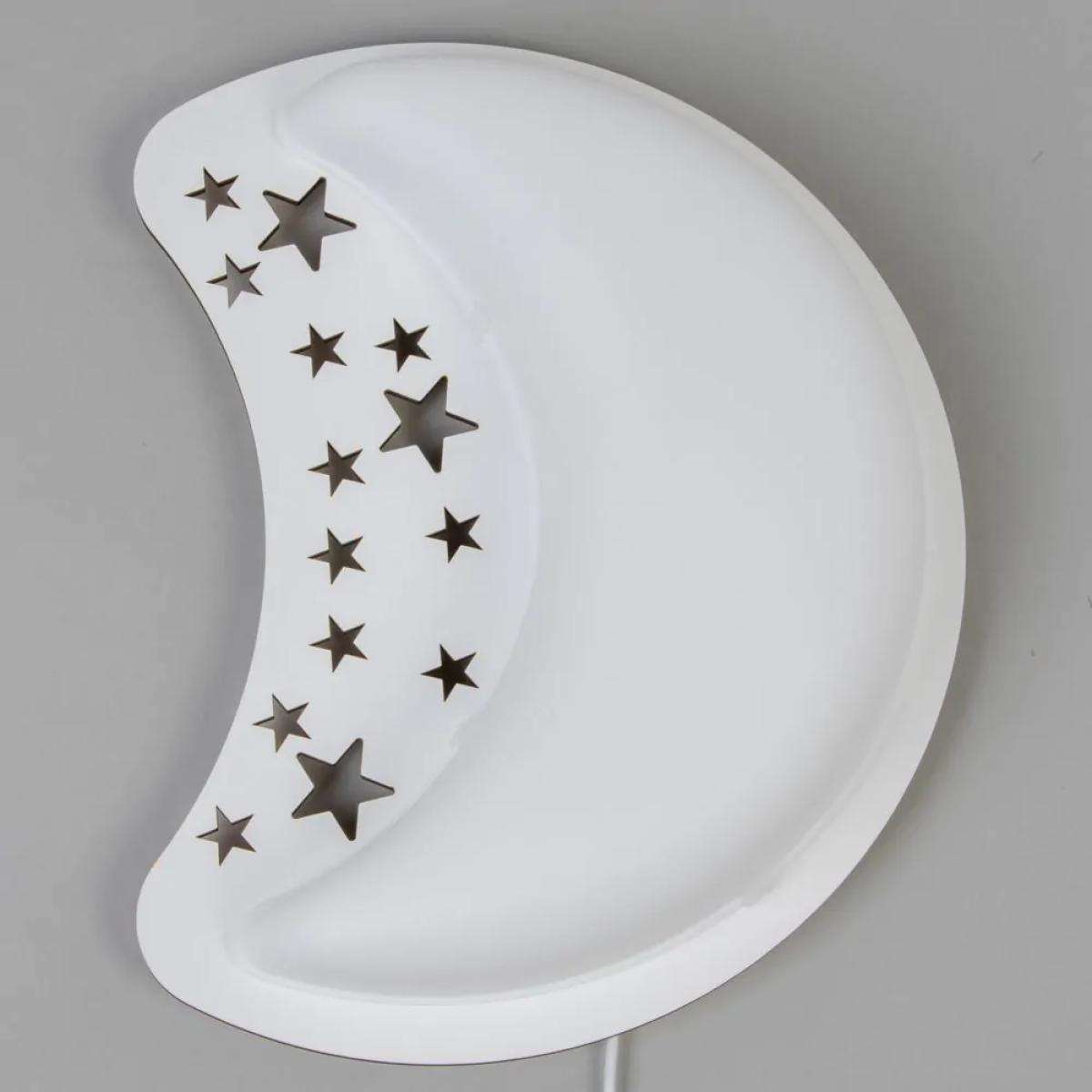 Creating a calming environment for your child's bedroom with the Moon Wall Lamp. This lamp is made of silicone, meaning that it is safe to touch for young children. It also has a gorgeous moon and stars design that inspires a space theme in your child's bedroom and projects a calming yellow night light into the room.