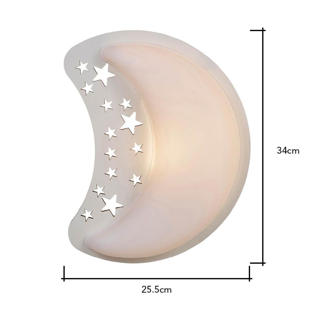 I love the moon wall light for its playful yet versatile design, making it a charming addition to any child's room or nursery. Its soft white glow creates a calming atmosphere, perfect for bedtime routines. The star details add a touch of whimsy, and it works well in both modern and traditional interiors. For styling tips, hang it beside a bed or in a cosy reading nook, and consider pairing it with soft pastel or neutral coloured bedding and accessories to keep the space feeling relaxed and inviting. Its simple colour palette ensures it blends seamlessly across various colour schemes, making it a practical yet decorative light option.