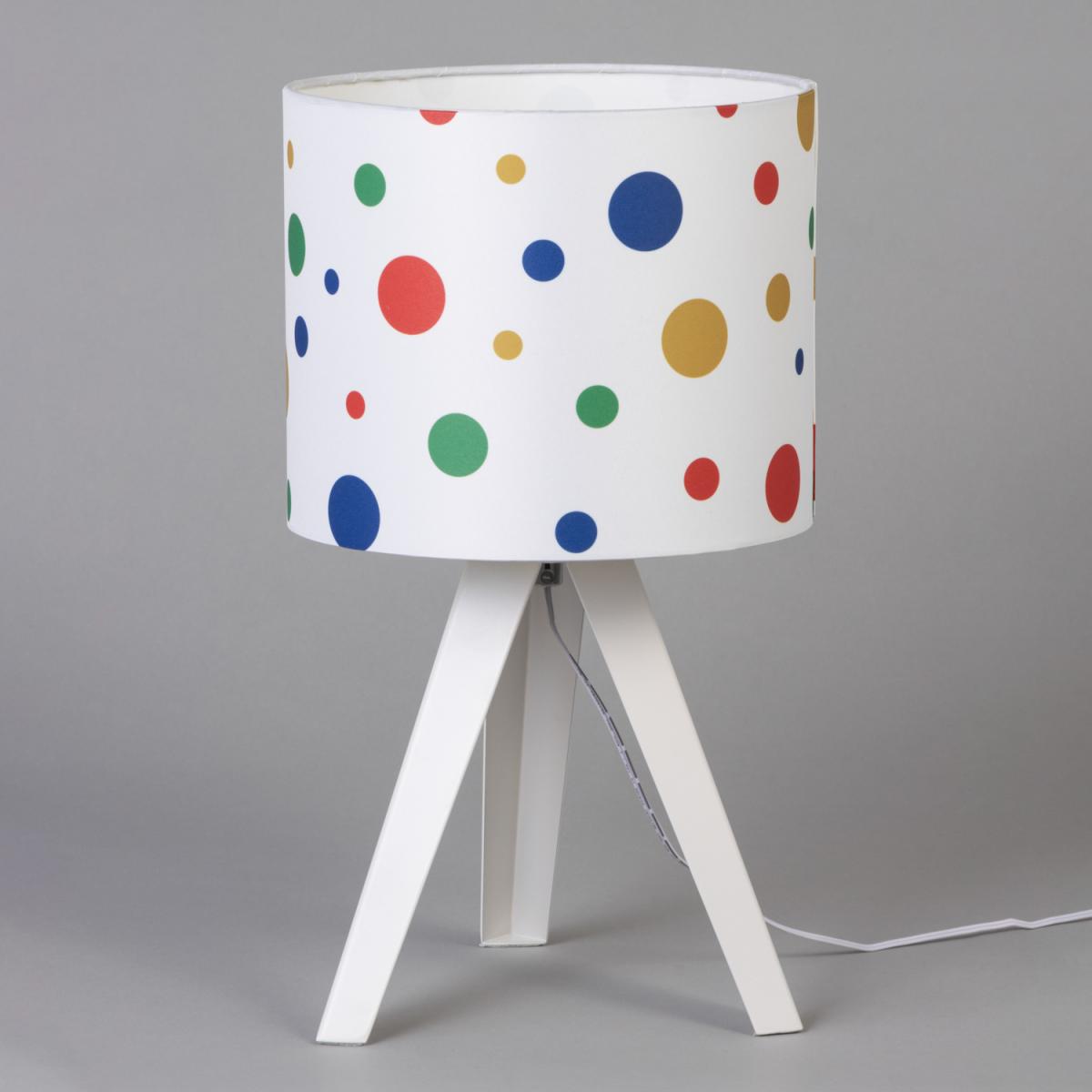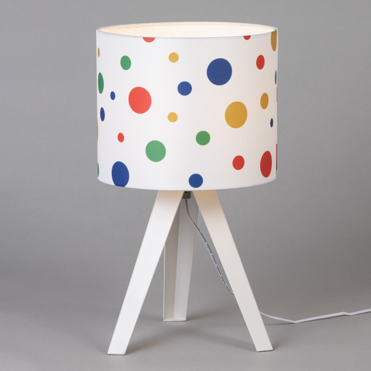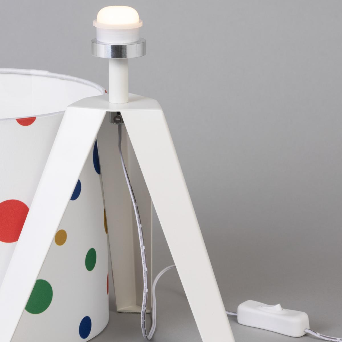 The Glow Polka Dots Table Light in White is a quirky accent to your child's desk or bedside table. The multicoloured polka dots of this tripod lamp wonderfully add colour to a modern neutral theme. This plug in table lamp is quick and simple to instal, requiring no electrician call out or wiring.