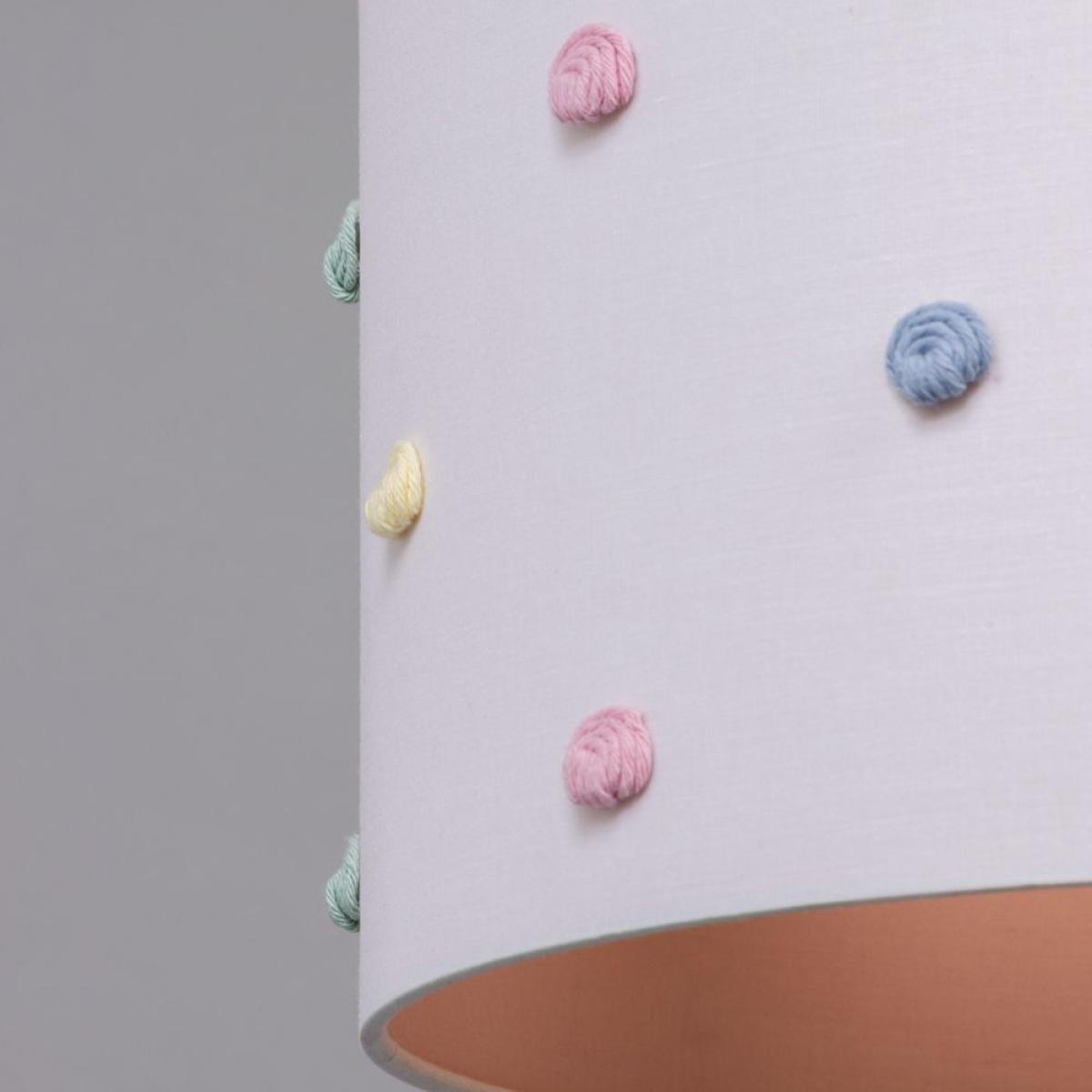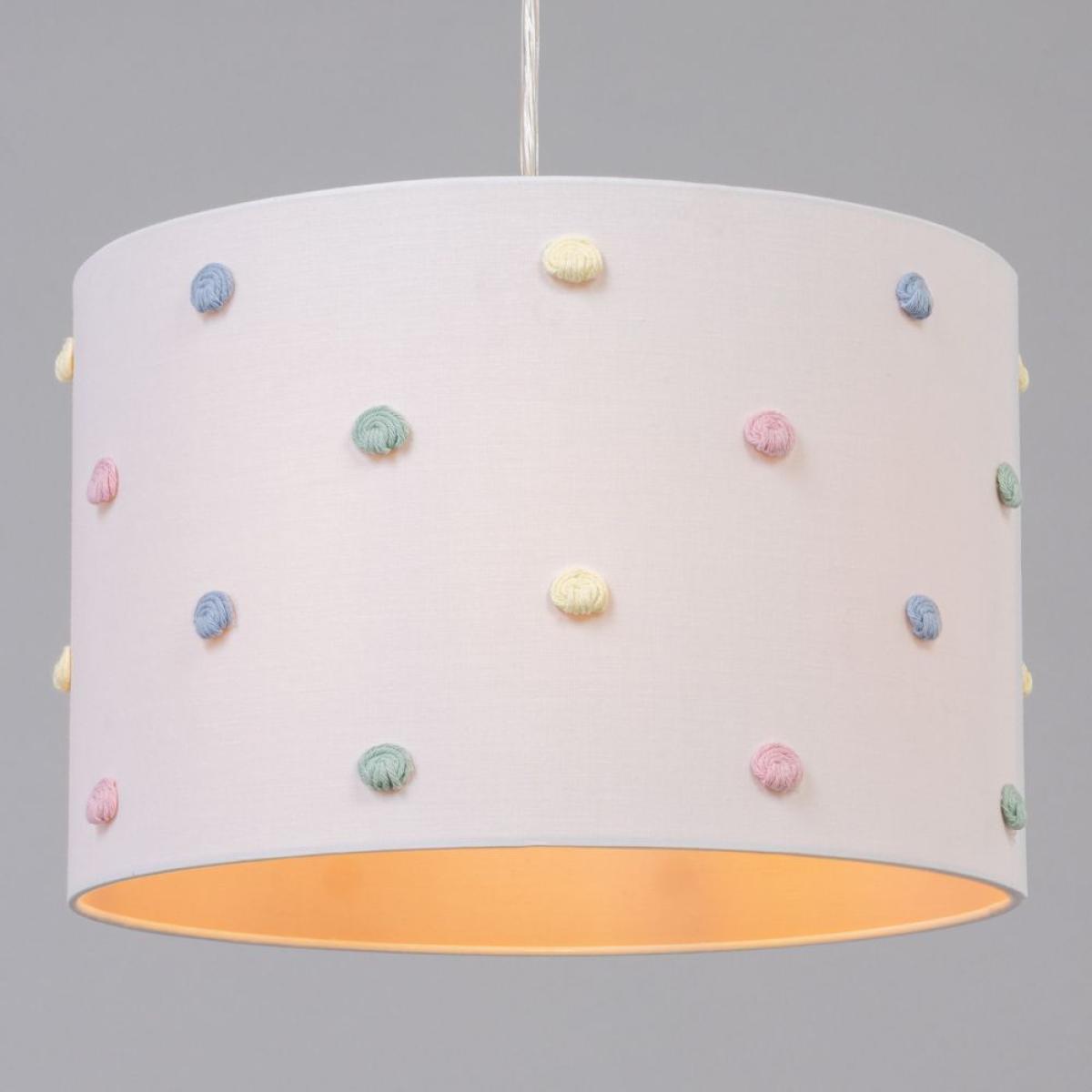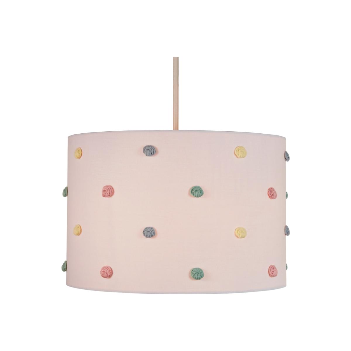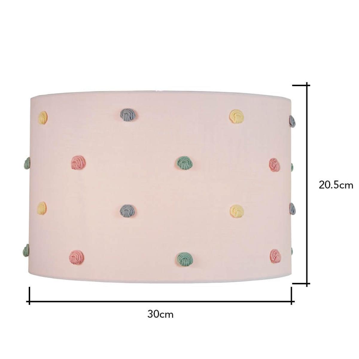 Bring a simple but adorable look your children's bedroom or playroom with the Pom Pom Light Shade. This light shade comes in white with a pink lining and is decorated in multi-coloured pastel pompoms. Easy fit shades are ideal for quickly updating any room as they simply screw onto any pre-existing light fitting.