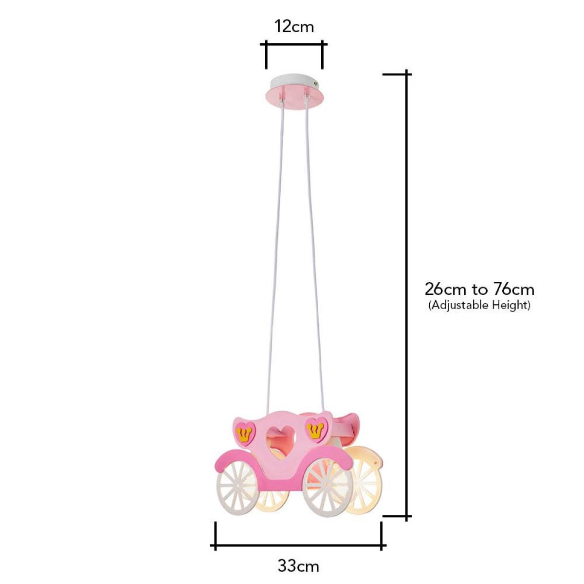 Perfect for princess theme bedrooms, the Princess Carriage Ceiling Light is the ideal fit for kid's rooms. This ceiling pendant features a beautiful carriage design and projects a warm glow into the room. It also comes in a pink and white finish that is ideal for lighter colour schemes.