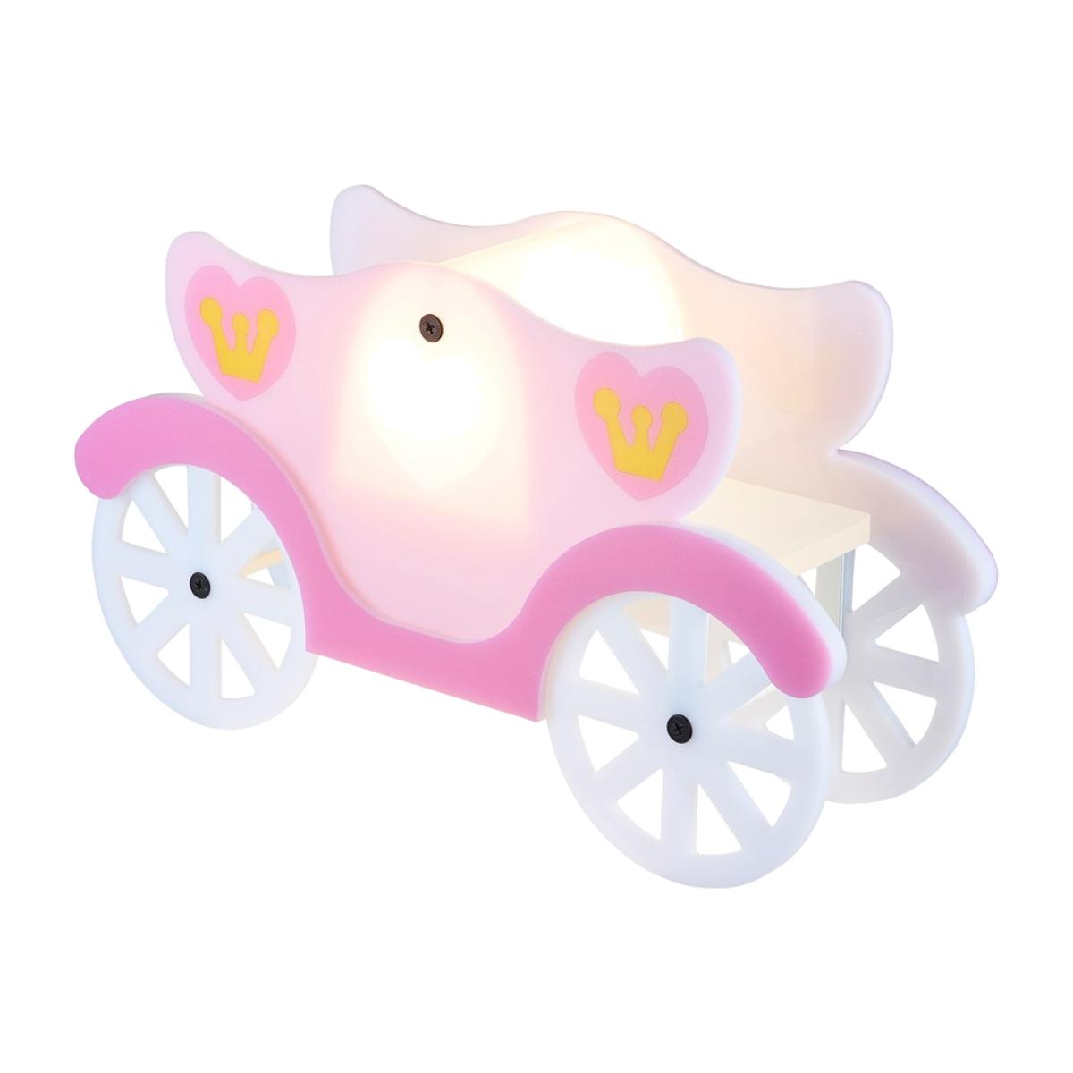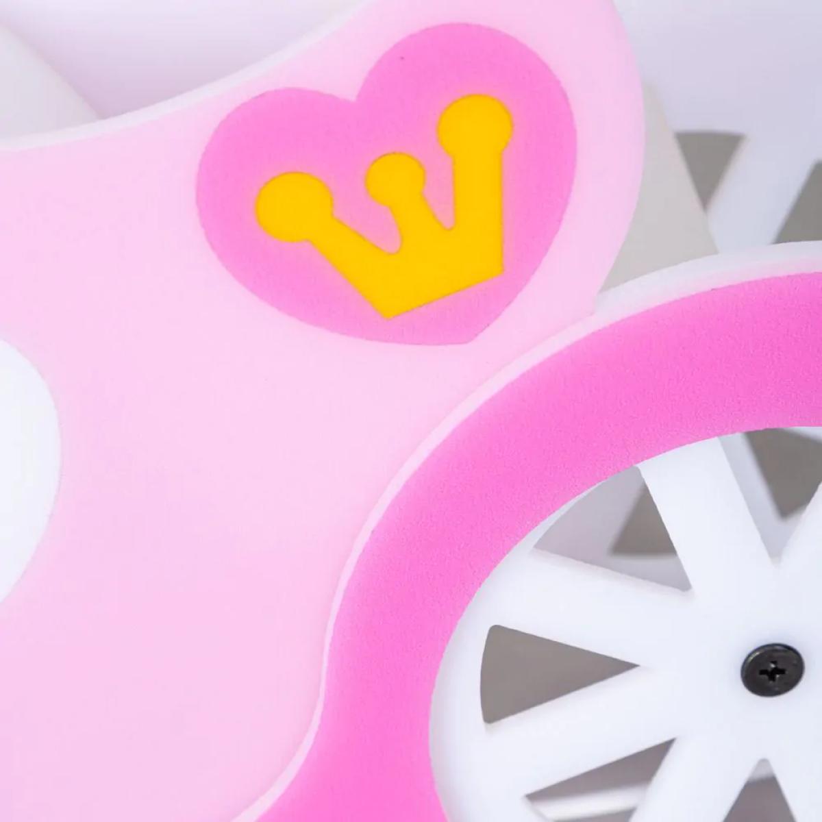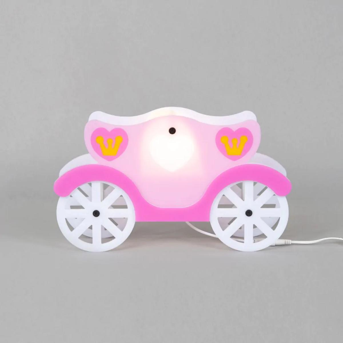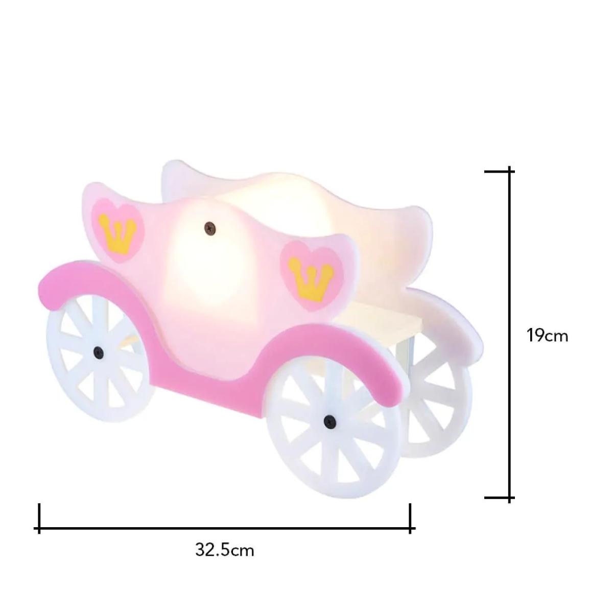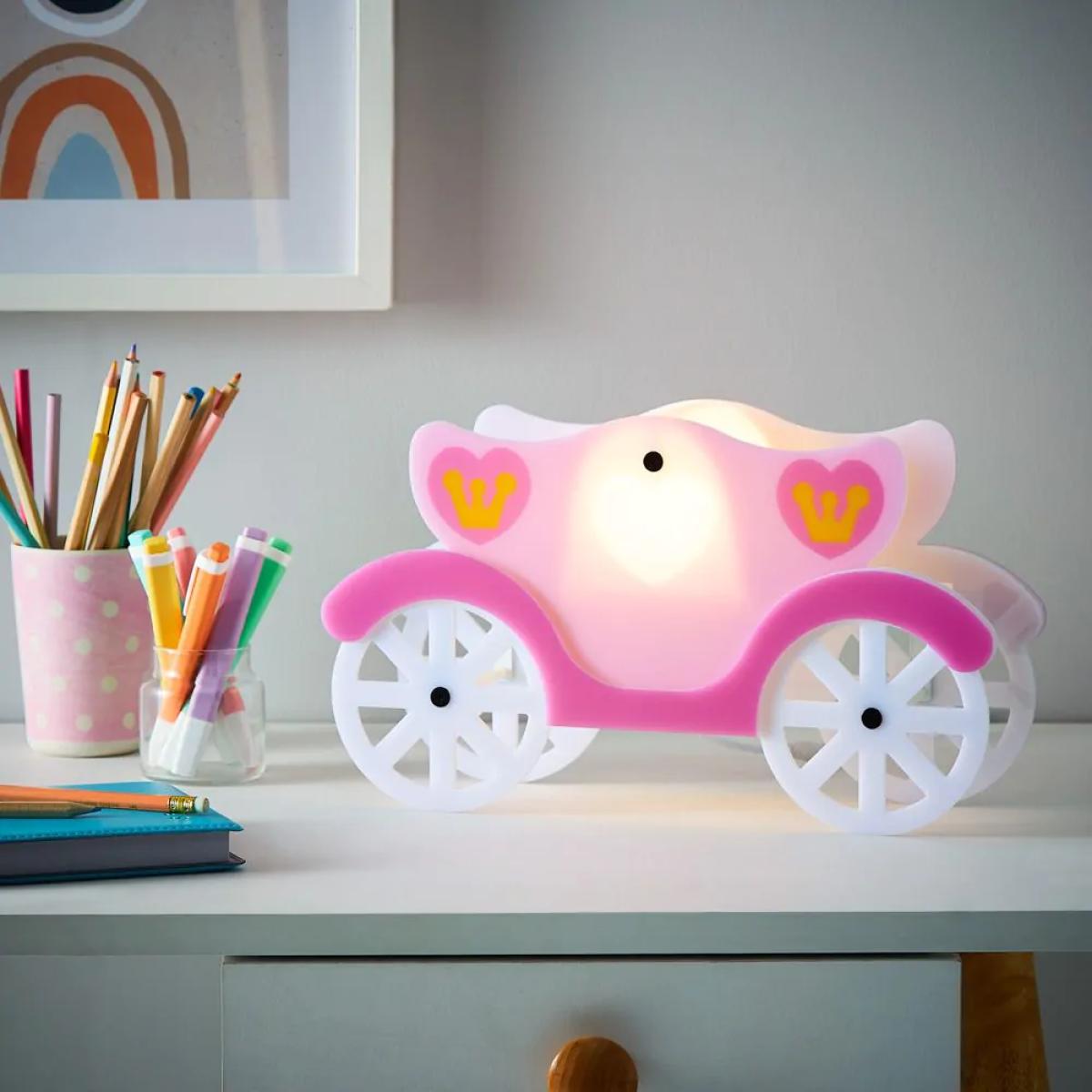 Light up your childs face with the Glow Princess Carriage LED Table Lamp. This adorable table lamp finished in white and pink is sure to bring a princess feel to any space. Pair this table lamp with the matching ceiling pendant to really finish the look, as well as adding a stunning focal feature point. Thee integrated LED bulbs provides a stunning illumination of light that is dispersed through the shade, giving a warm glow across your the room. Ensuring your little one can see clearly one night time has come along.