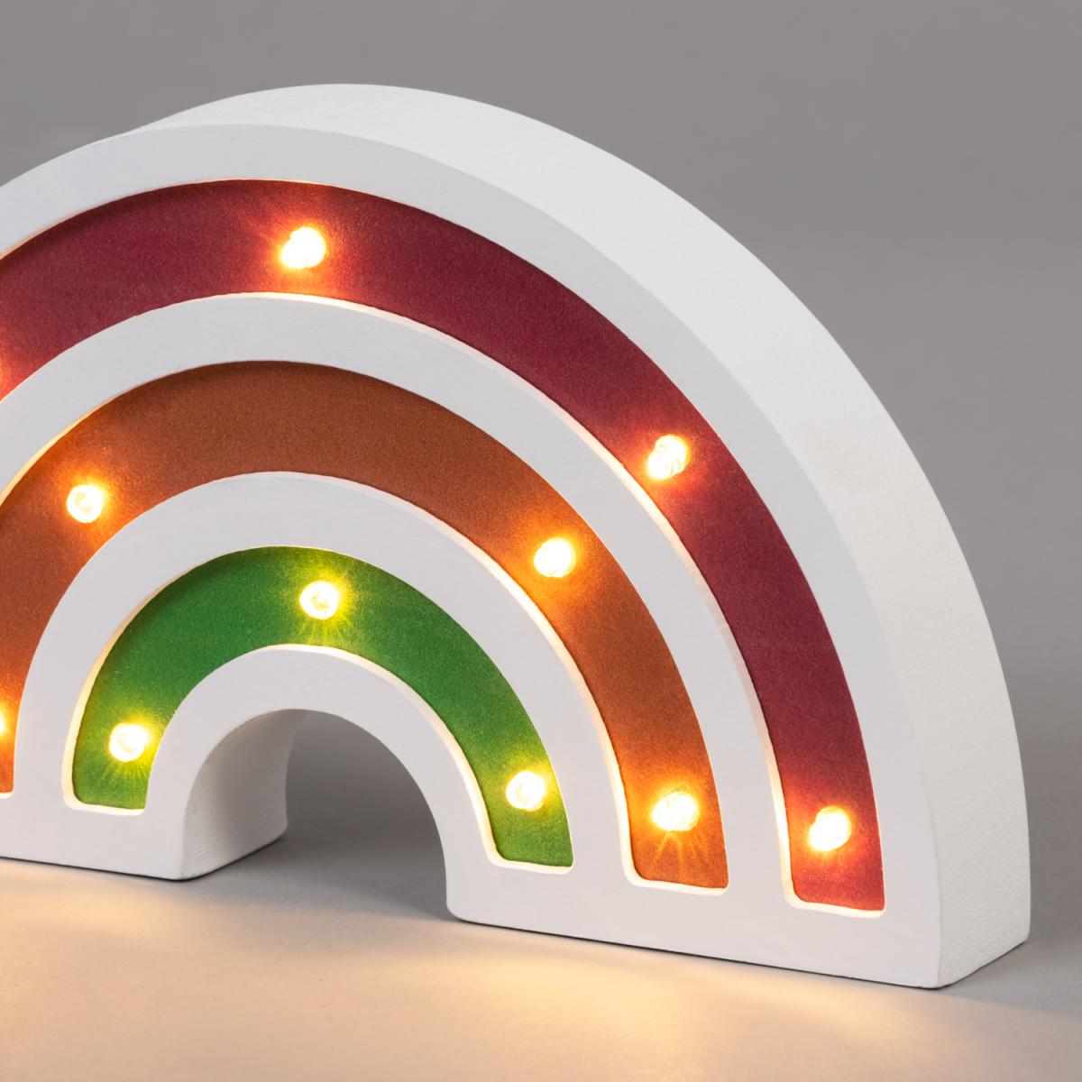 Add a touch of magic to your room with the Glow Rainbow Table Lamp in White. This charming lamp features a rainbow-shaped base that emits a soft and soothing glow. Its white finish blends seamlessly with any decor style, making it a delightful addition to bedrooms, nurseries, or playrooms.