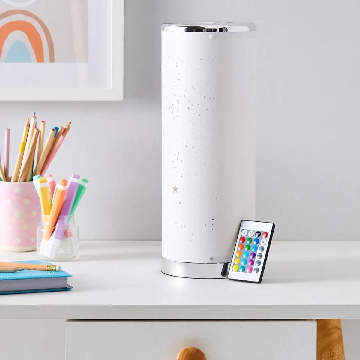 The Glow Starburst Colour Changing LED Cylinder Table Lamp is the perfect light for any astrology lover. The stunning design of this table lamp means once illuminated it looks like stars twinkling away in the sky, giving a really calm and relaxed atmosphere. The colour changing element of this table lamp is controlled by the included remote control which gives you 16 different colour options to choose from, that can be activated from anywhere in the room. While being the perfect high for sitting on bedside tables or desks.