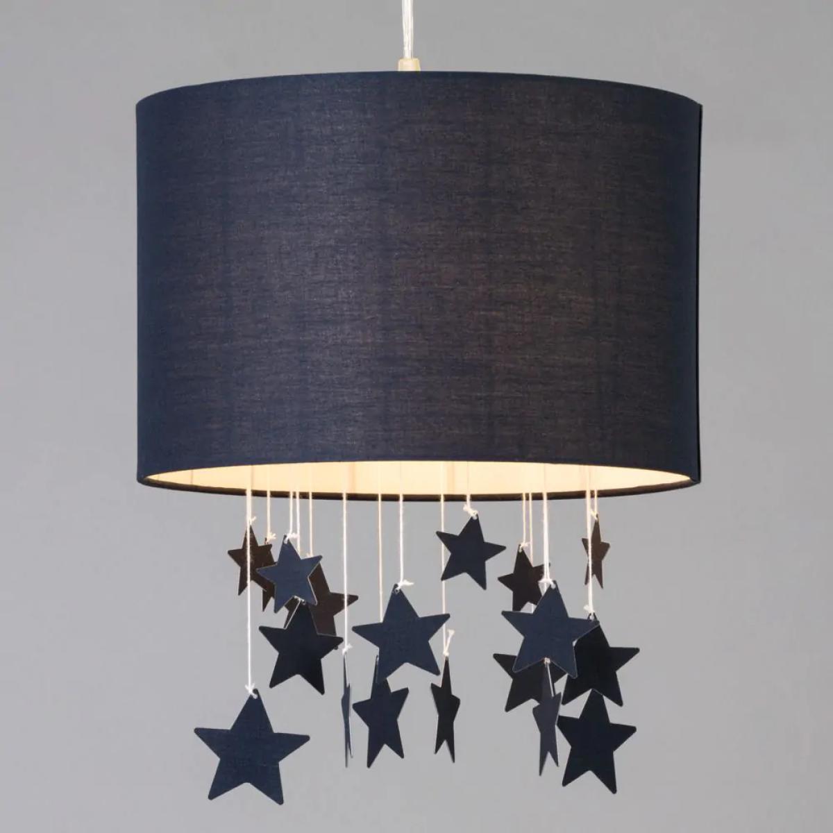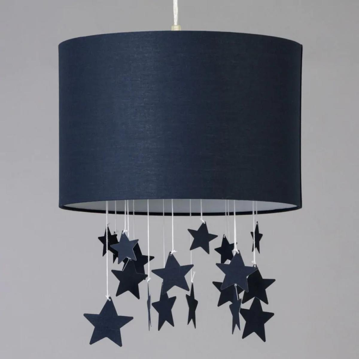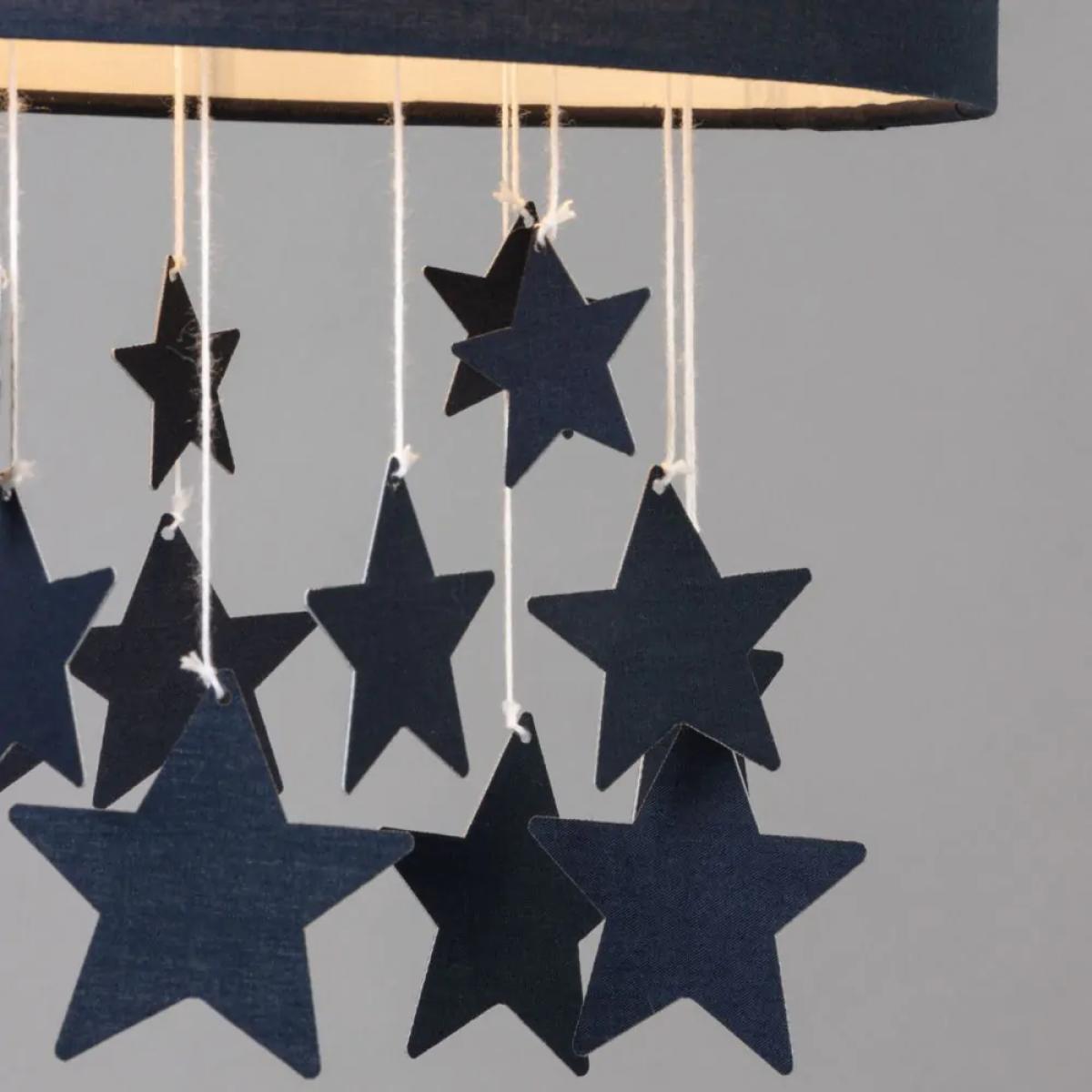Perfect for nurseries and playrooms, the Stars Mobile Light shade created a mesmerising space aesthetic. This lamp shade comes in a Navy finish, diffusing a warm glow into the surrounding area. With hanging decorative stars for a decorative mobile appearance.