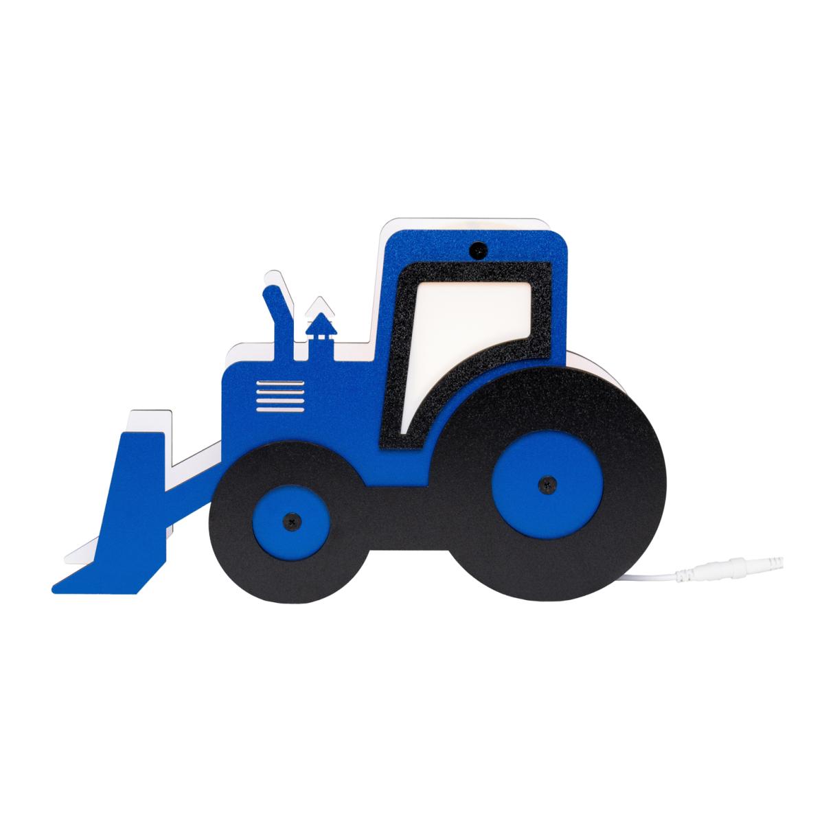 Bring farm-themed fun into your kid's bedroom or nursery with the Glow Tractor Shaped Table Lamp in Blue and Black. This cute tractor table lamp will make an adorable bedside light for your little ones, adding an entertaining, vibrant look to their room. The bold blue and black colours on this cute kids' lamp bring a pop of playful colour and feature an in-line on-off switch and energy-efficient integral LED. Style this with our tractor ceiling pendant light (sold separately) to complete a matching look.