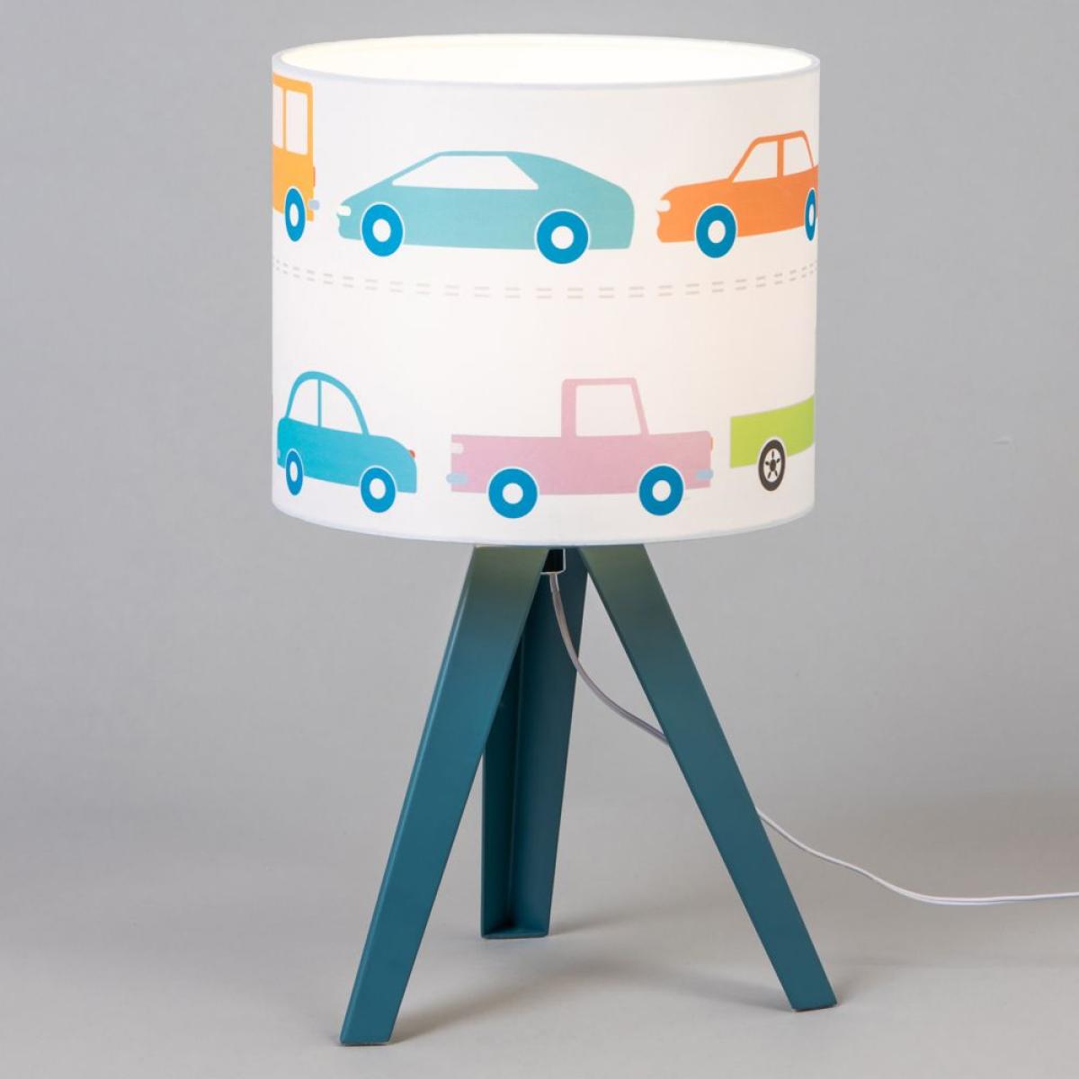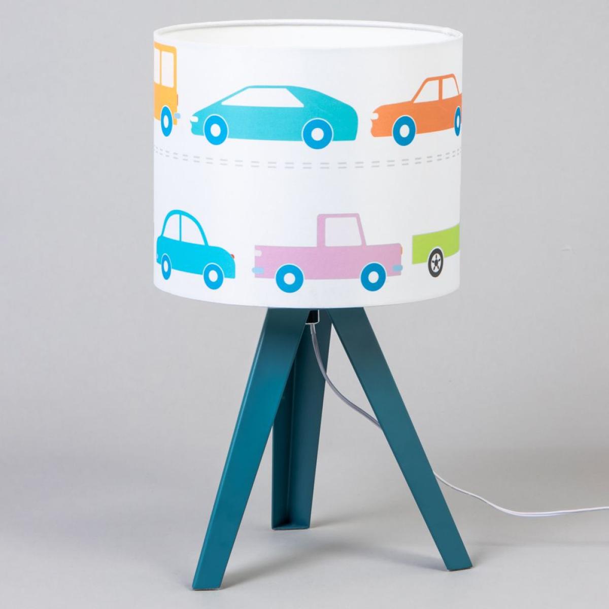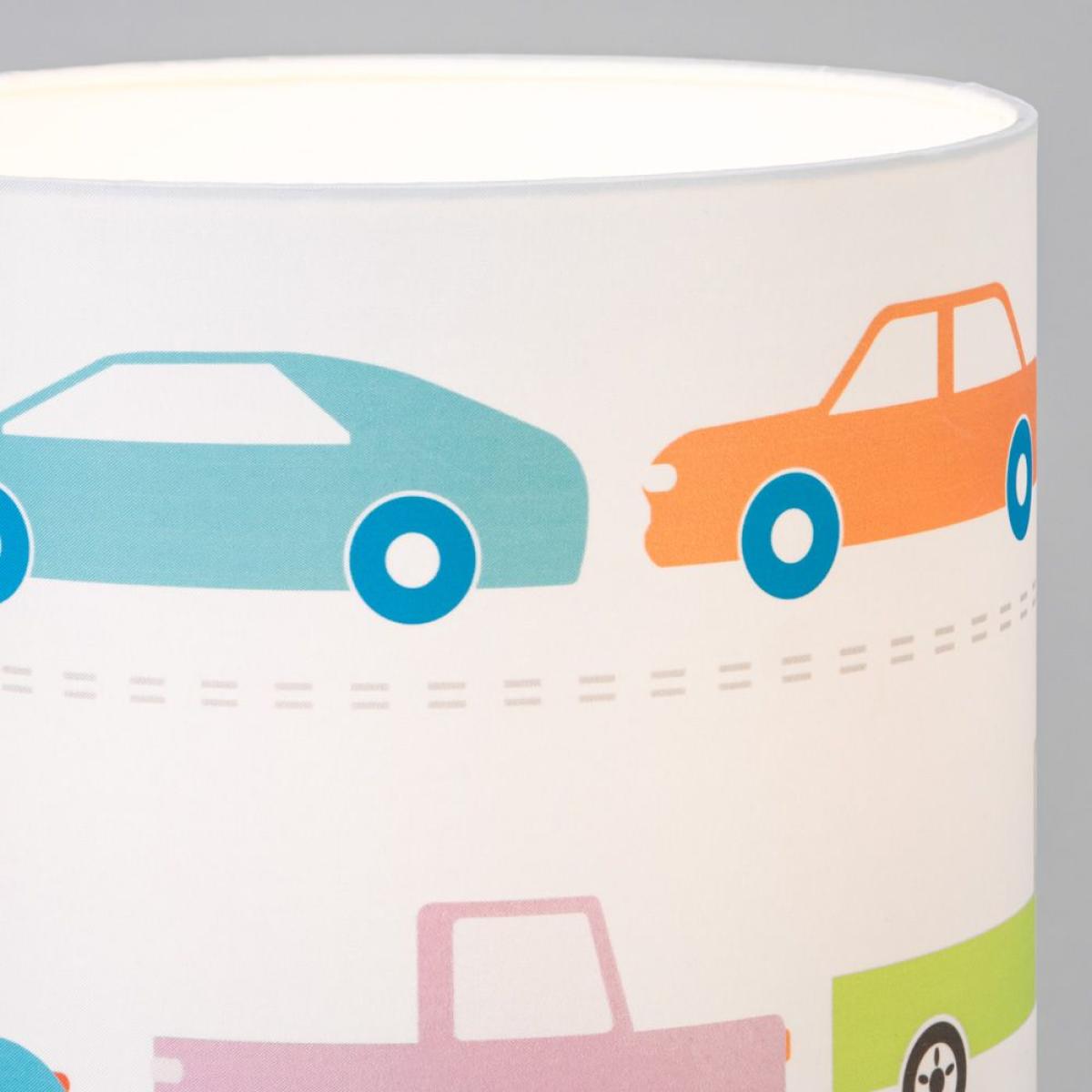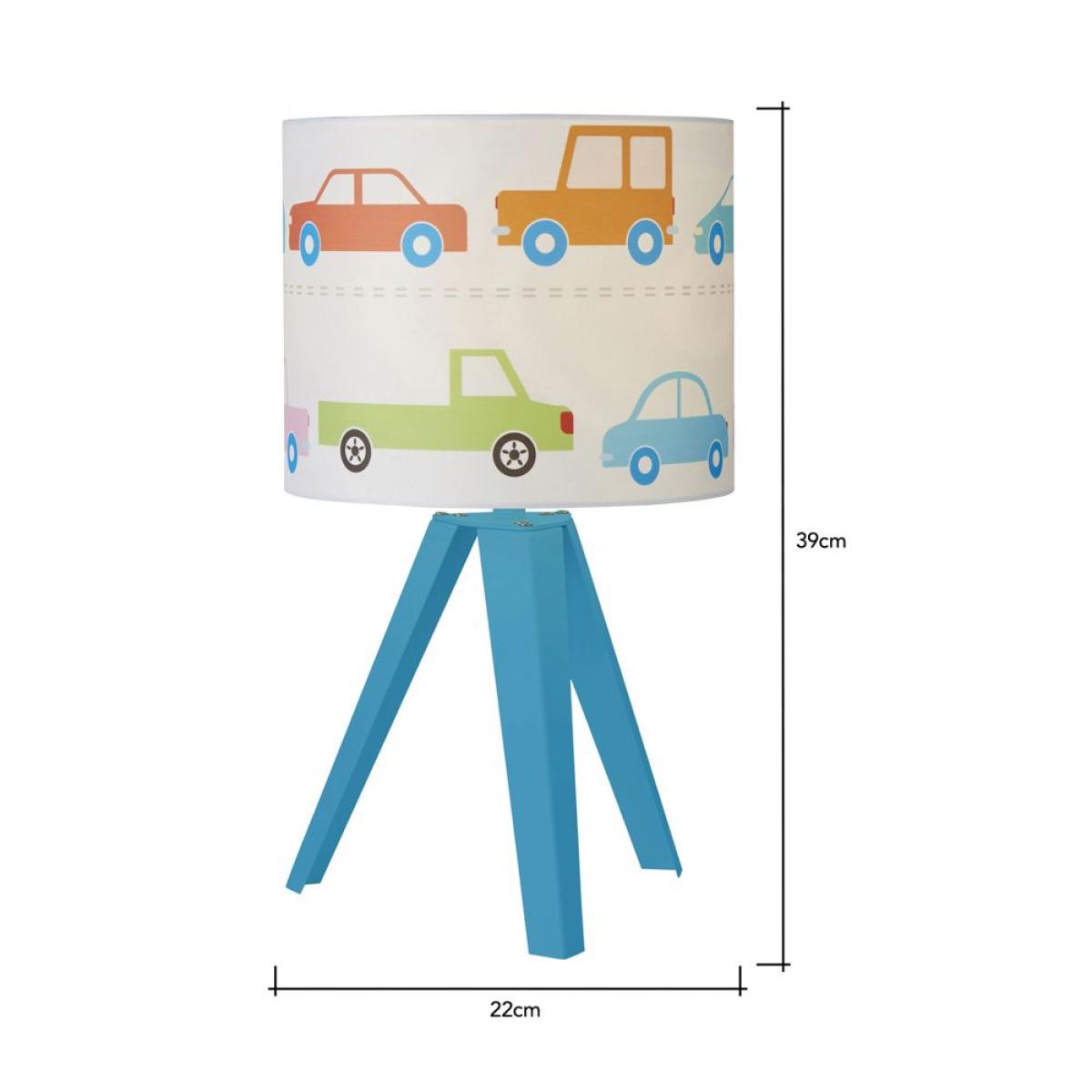 Find the perfect nursery lighting for your child with this Traffic Table Light. This tripod table lamp features a blue stand and a white fabric shade with a design of cars and trucks in varying colours, making for a fun and charming addition to any playroom. Lampshades are also great for diffusing a warm toned illumination into any room, allowing for a calming ambience.