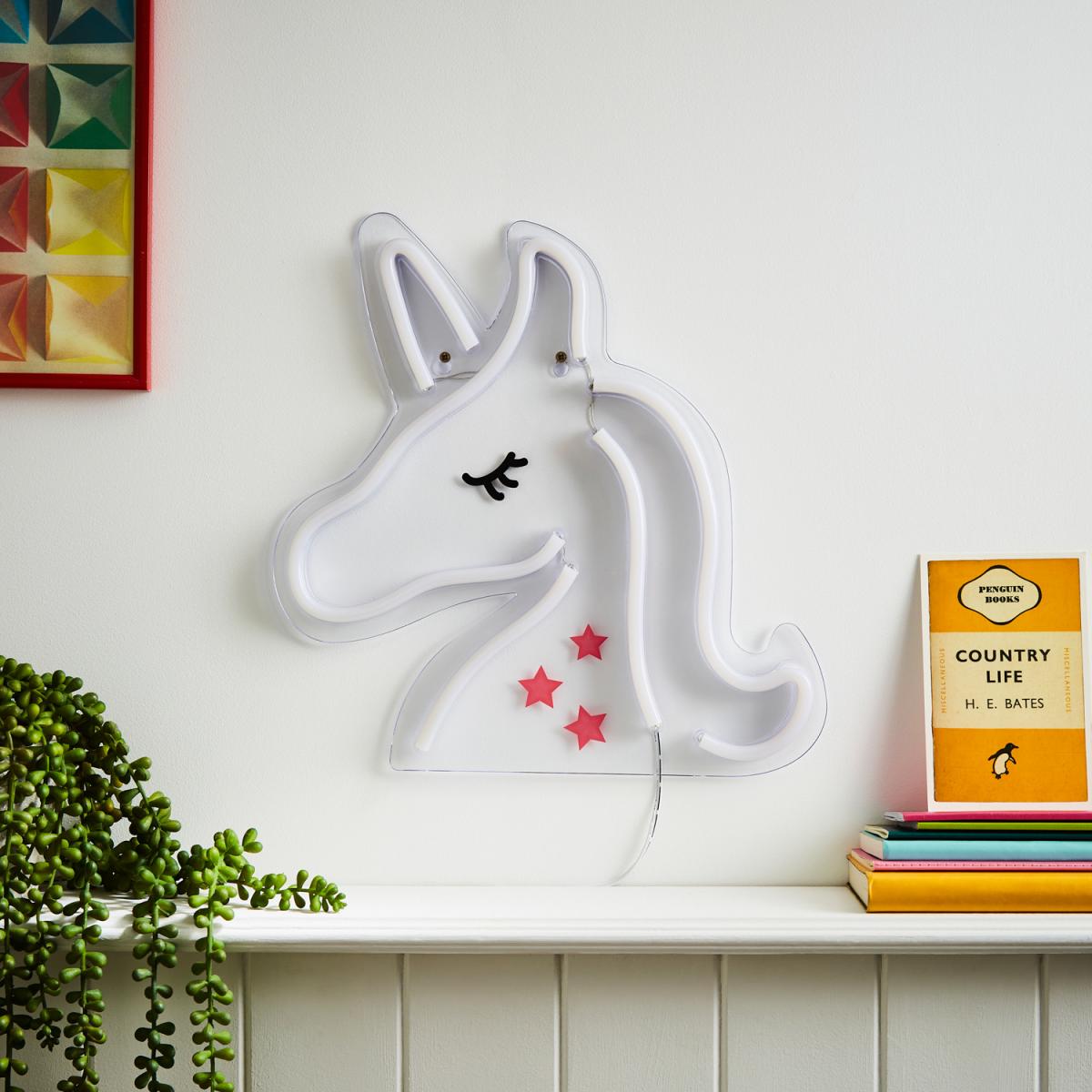 I love this cute unicorn wall light for adding a touch of fun and personality to a child's bedroom or a playful corner in a living space. Its white hue makes it versatile, pairing well with pastel shades or monochrome schemes, while the unicorn shape lends a whimsical vibe without overpowering the decor. It works particularly well in cosy nooks, kids’ rooms, or even in a modern nursery setup. Practical styling tips include installing it at eye level for a standout feature or pairing it with other fairy-tale-inspired accessories for a themed look. To keep it looking fresh, opt for a clean, uncluttered wall space so the neon unicorn remains a focal point.