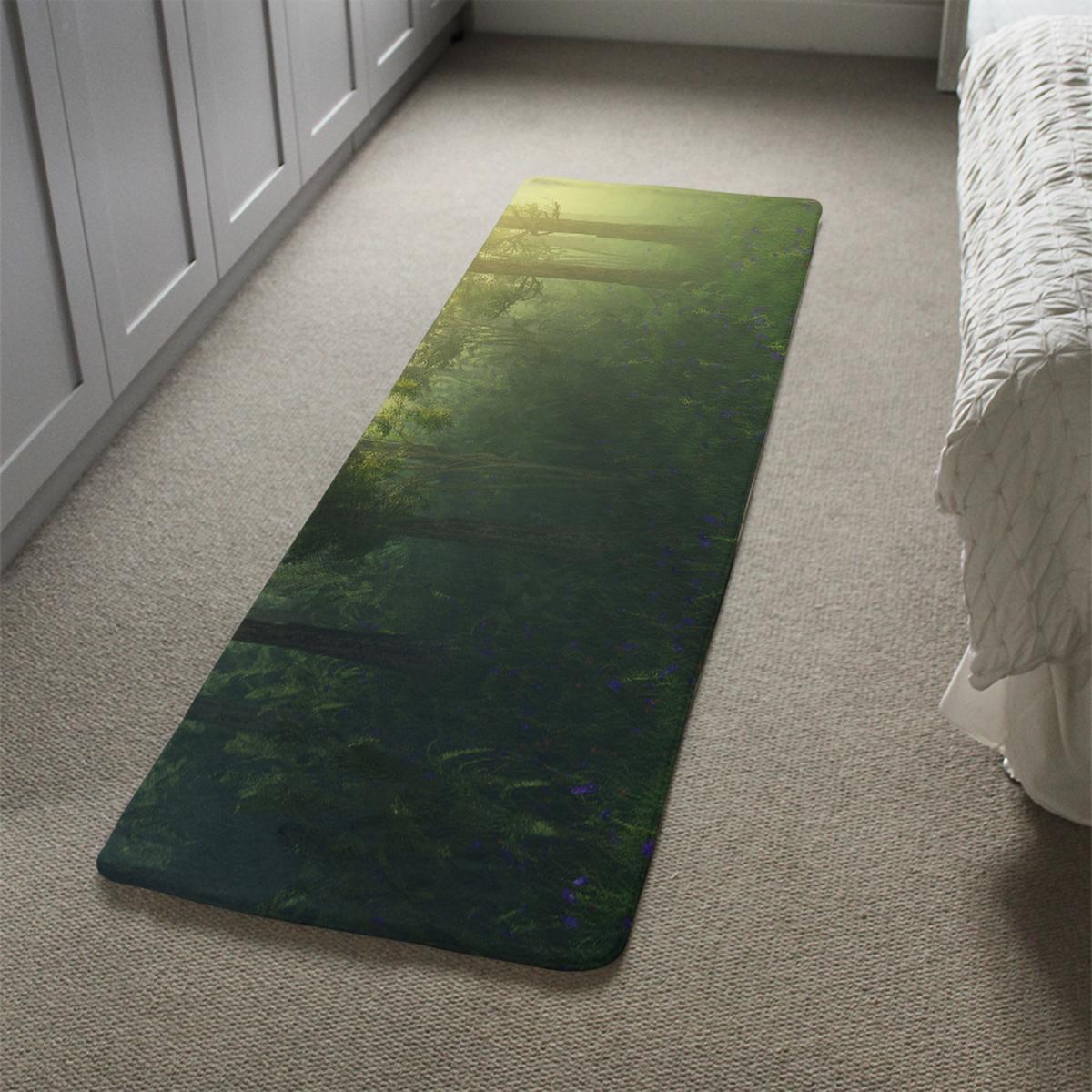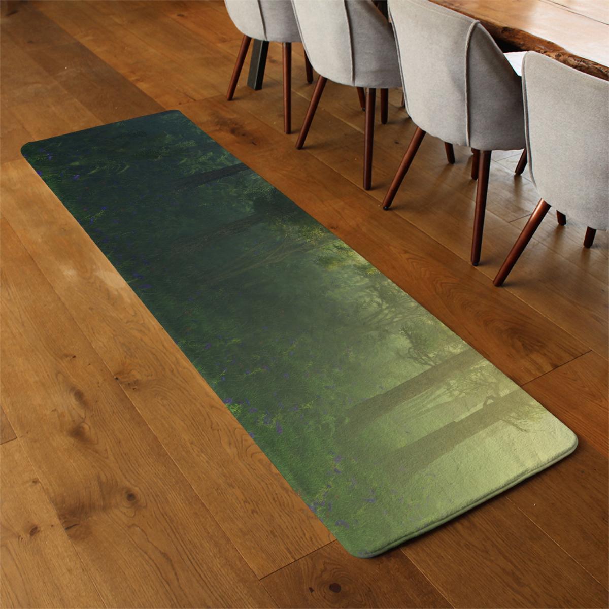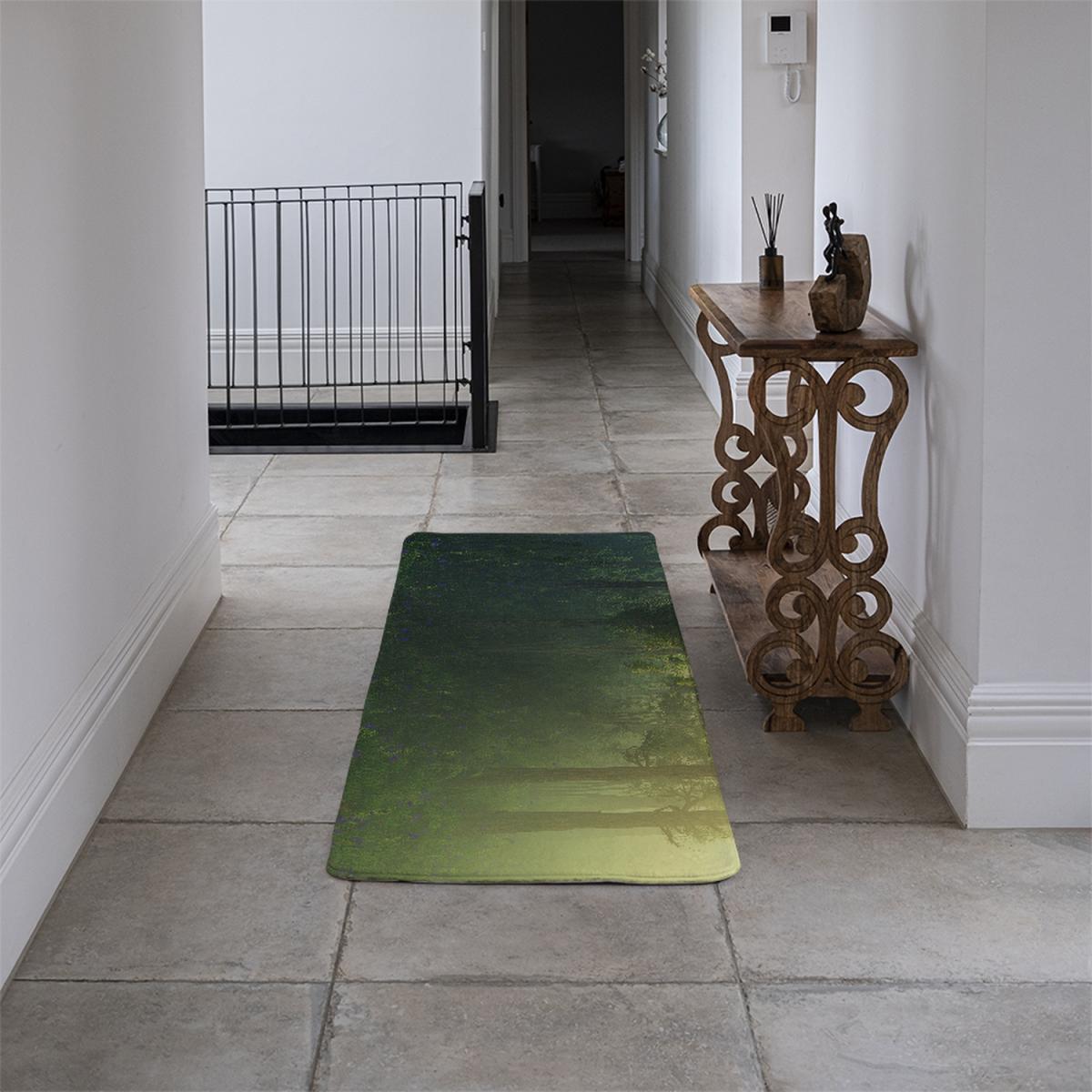 Glowing fog among the trees Designer Runner Rug - Green