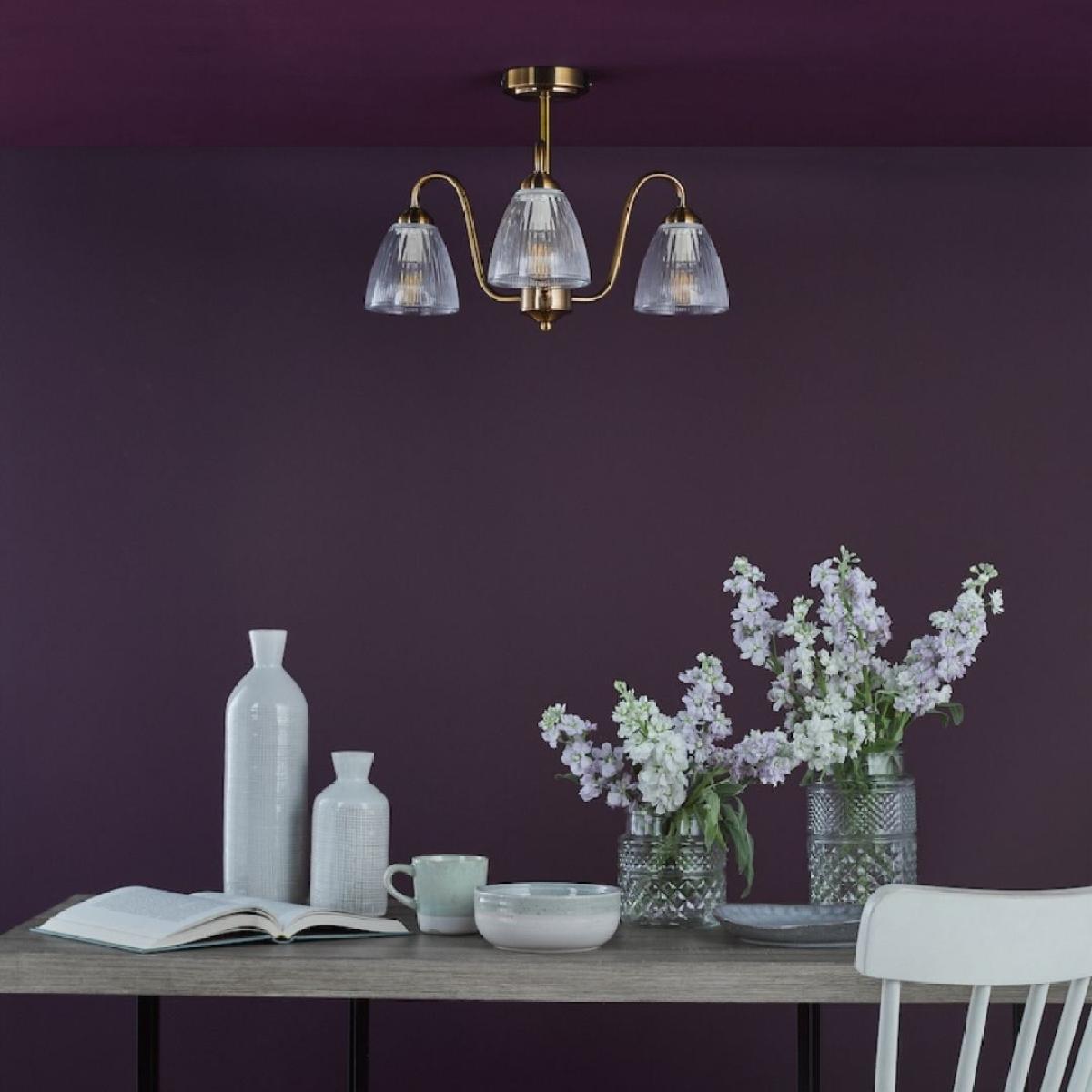 Illuminate your space with classic elegance using the. Perfect for rooms with low ceilings, this traditional 3-light fixture boasts an antique bronze finish and clear ribbed glass shades that diffuse light beautifully. Whether you're after a touch of vintage charm or a subtle blend of old and new, this ceiling light gem delivers. It's a brilliant choice for those seeking lighting for low ceilings without compromising on style or luminosity.