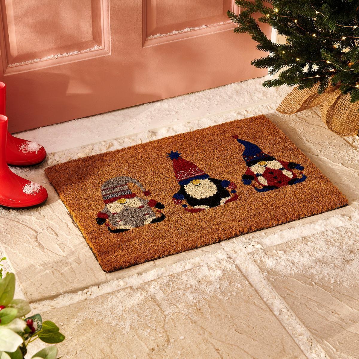 I love the cheerful, festive vibe that this gnome coir doormat brings to an entrance. Its vibrant red, brown, and blue colours work especially well in cosy, traditional or rustic interiors, adding a welcoming touch that’s great for the holiday season but also fun year-round. It’s practical too-hard-wearing and easy to clean-making it ideal for busy entrances. To style it, consider pairing with natural fibre or wooden accessories for a warm, organic look, and keep surrounding decor simple so the mat remains a charming focal point. It’s a playful addition that invites guests in with a bit of seasonal cheer.