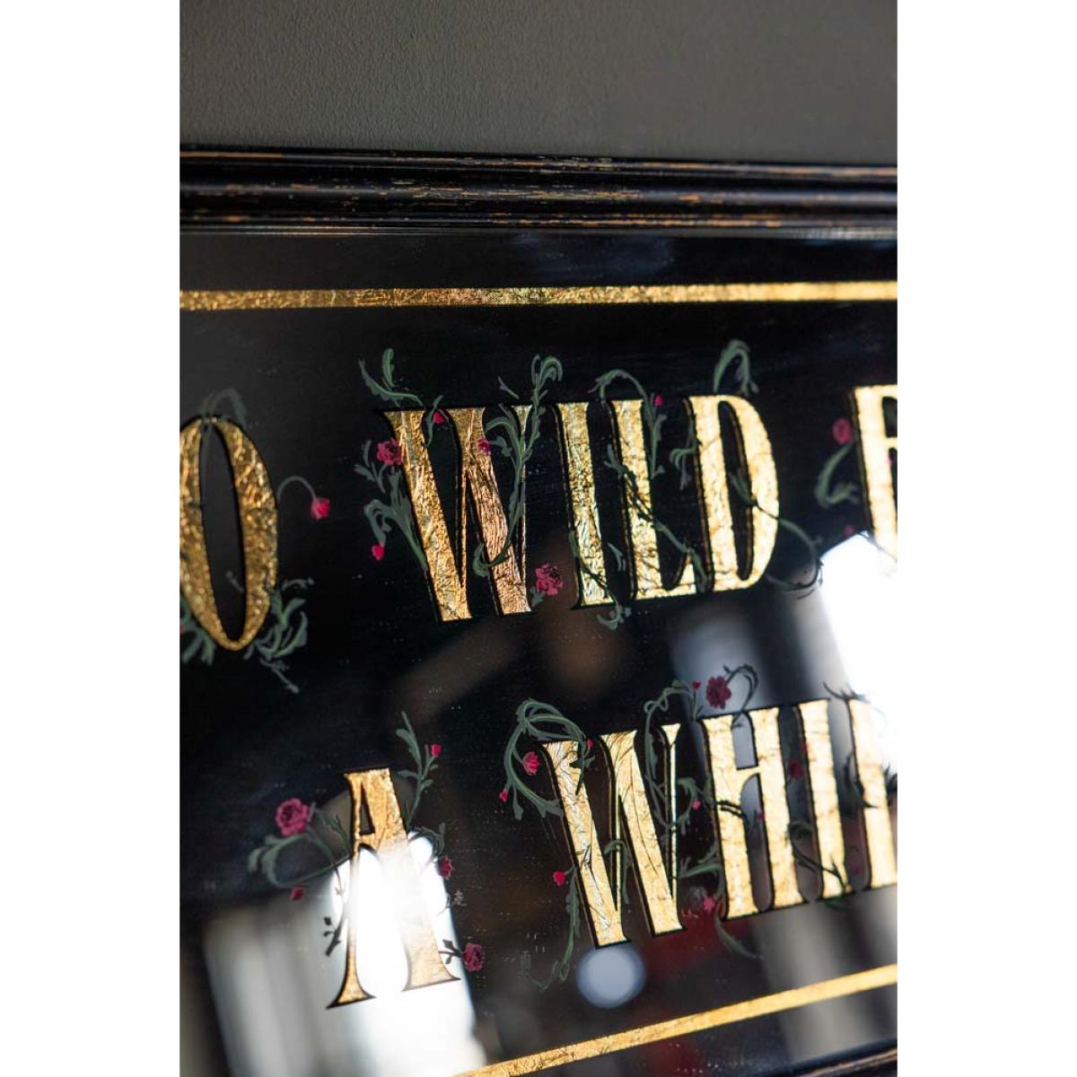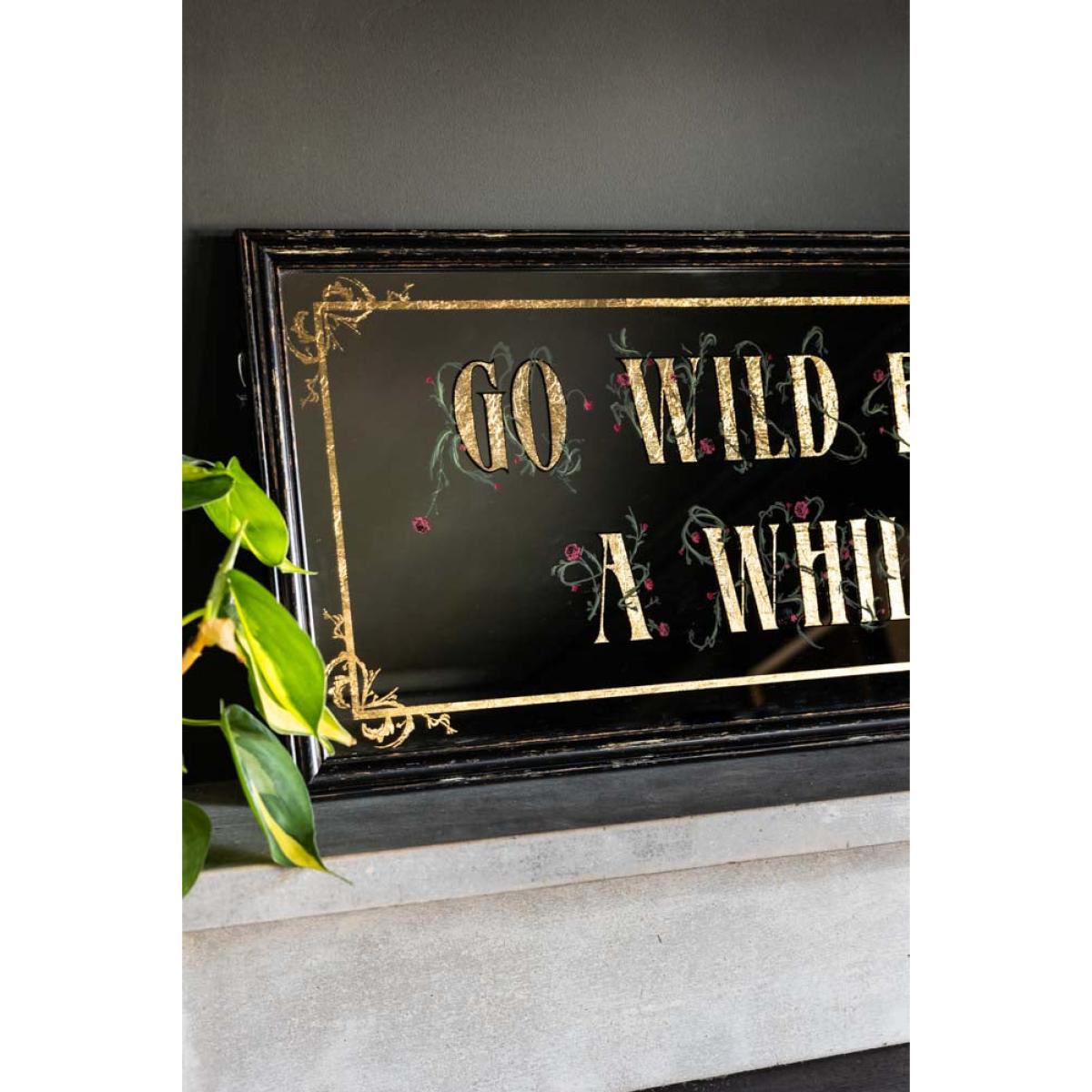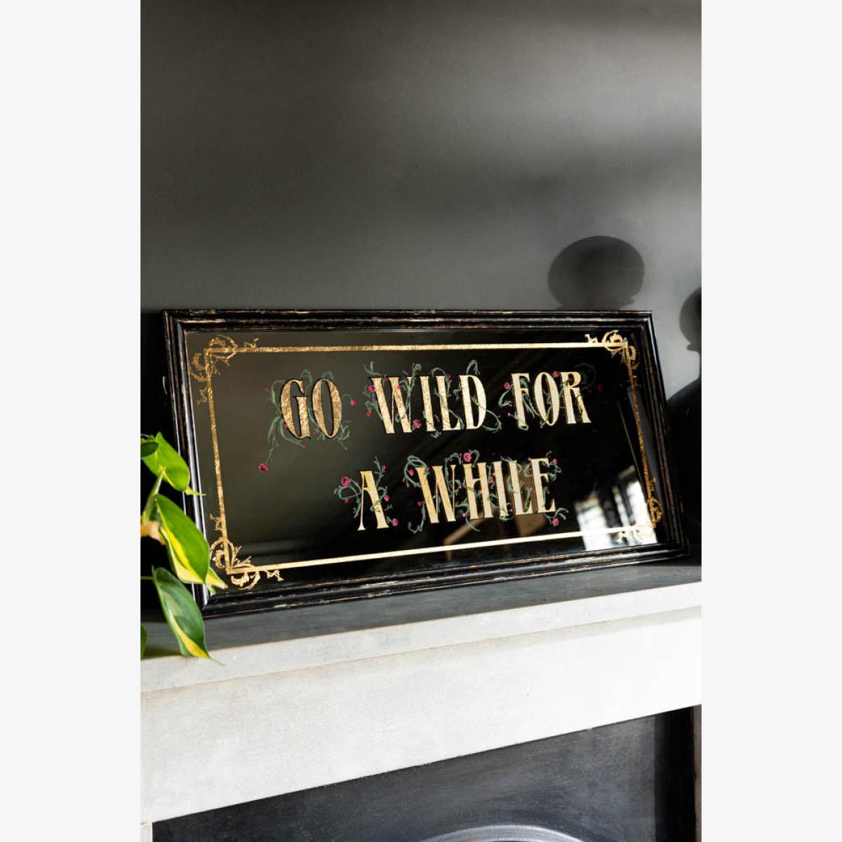 Celebrate the untamed power of your wild side with the Go Wild For A While Decorative Mirror. A quirky wall mirror that doubles as a piece of art, this vintage-style mirror transforms your home into a wonderland of playful personality. Inspired by vintage signage, the decorative wall mirror features the words "Go wild for a while" in gold, entwined by vines and roses, with a decorative border and an aged black frame. The perfect addition to your gallery wall, bedroom or entrance, this fabulous piece of mirrored wall art is a reminder to live a charmed, wild and wonderful life - after all, life is too short to be well-behaved all the time! - Go Wild For A While Decorative Wall Mirror- Vintage-style black frame included - Measures: W65cm x H32cm- Materials: Glass & Plastic