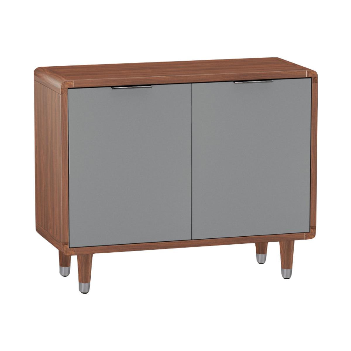 I love this sideboard for its combination of warm walnut tone and modern grey doors, which makes it incredibly versatile for a range of interiors. It works particularly well in contemporary or Scandi-inspired spaces, where its clean lines and natural wood finish can add warmth without feeling bulky. Practical styling tips include pairing it with understated decorative accessories, such as statement vases or minimal artwork, to keep the look uncluttered. For added character, consider mixing in textured textiles or plants on top-this piece has a sleek and functional design that can serve as both storage solution and a subtle focal point in living rooms, dining areas, or even hallways.