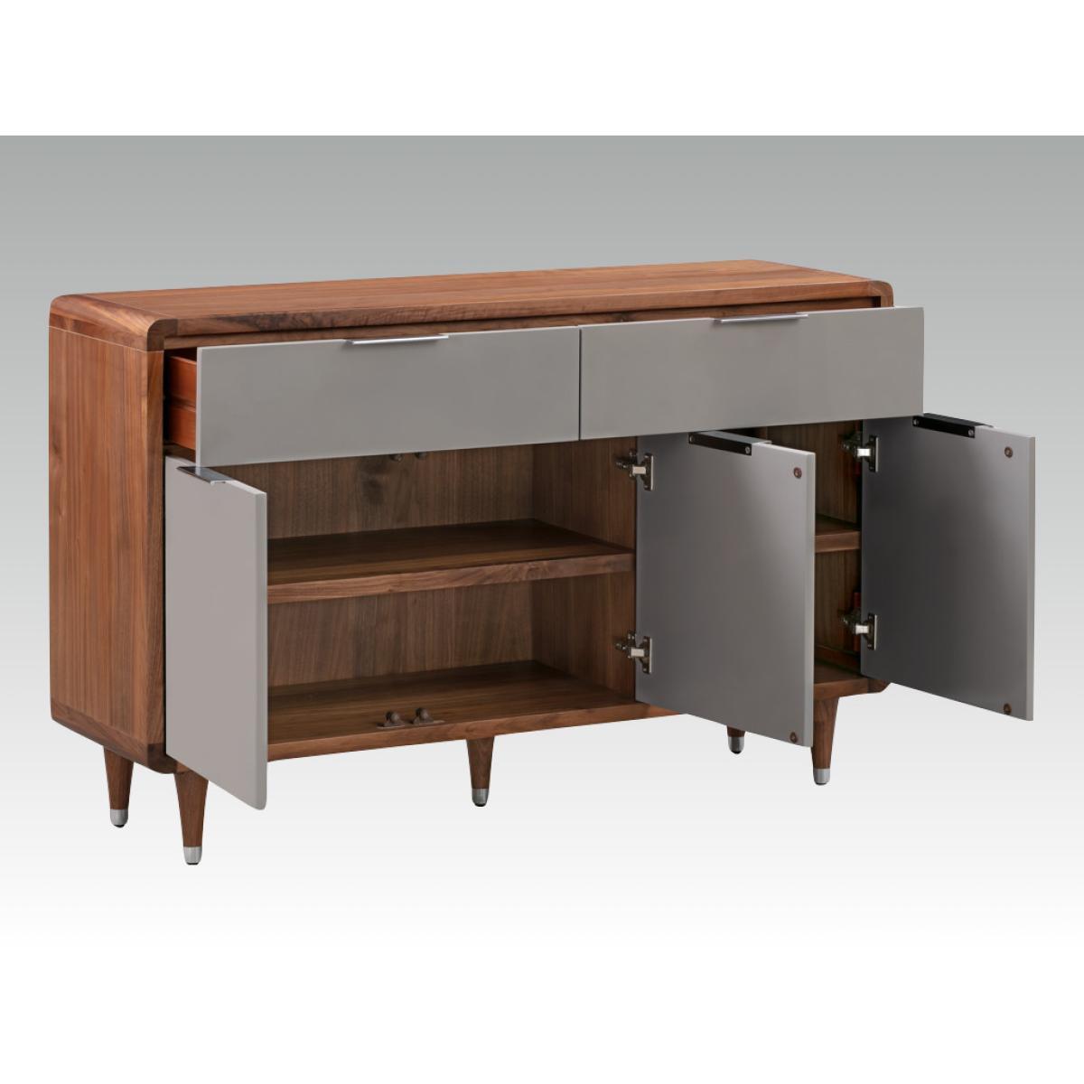 Curved walnut corners and off-white contrast with modern chrome while capped legs add to the retro vibe. Open the three soft-close doors for strong shelving where you can neatly stack all of your crockery and dinnerware. The stylish Goa 3 Door Sideboard provides abundant storage and brings oodles of personality to vintage or bohemian homes. Natural walnut with veneers for extra strength Off white Molesbreath high gloss on fronts Soft close drawer and doors Striking chrome legs caps and handles Available in oak or walnut.
