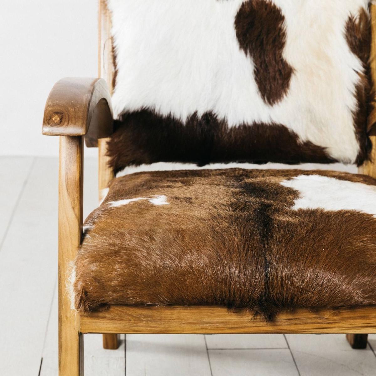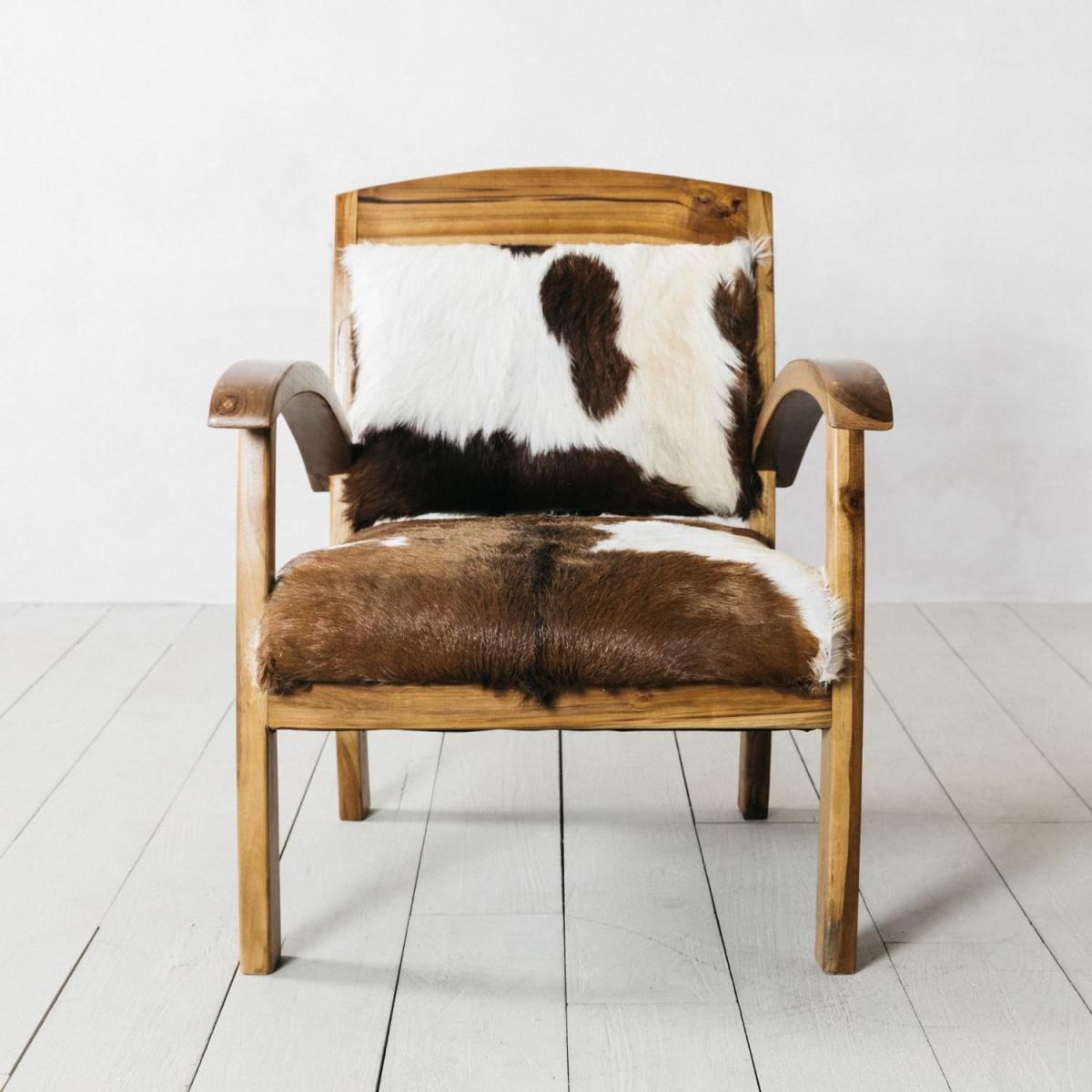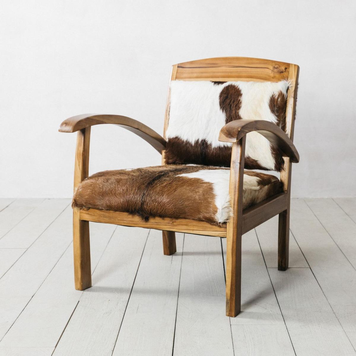 Beautifully crafted from teak and goat hide, this armchair combines rustic natural materials with refined design. We love that each one features a unique hide, ensuring that no two pieces are exactly the same.