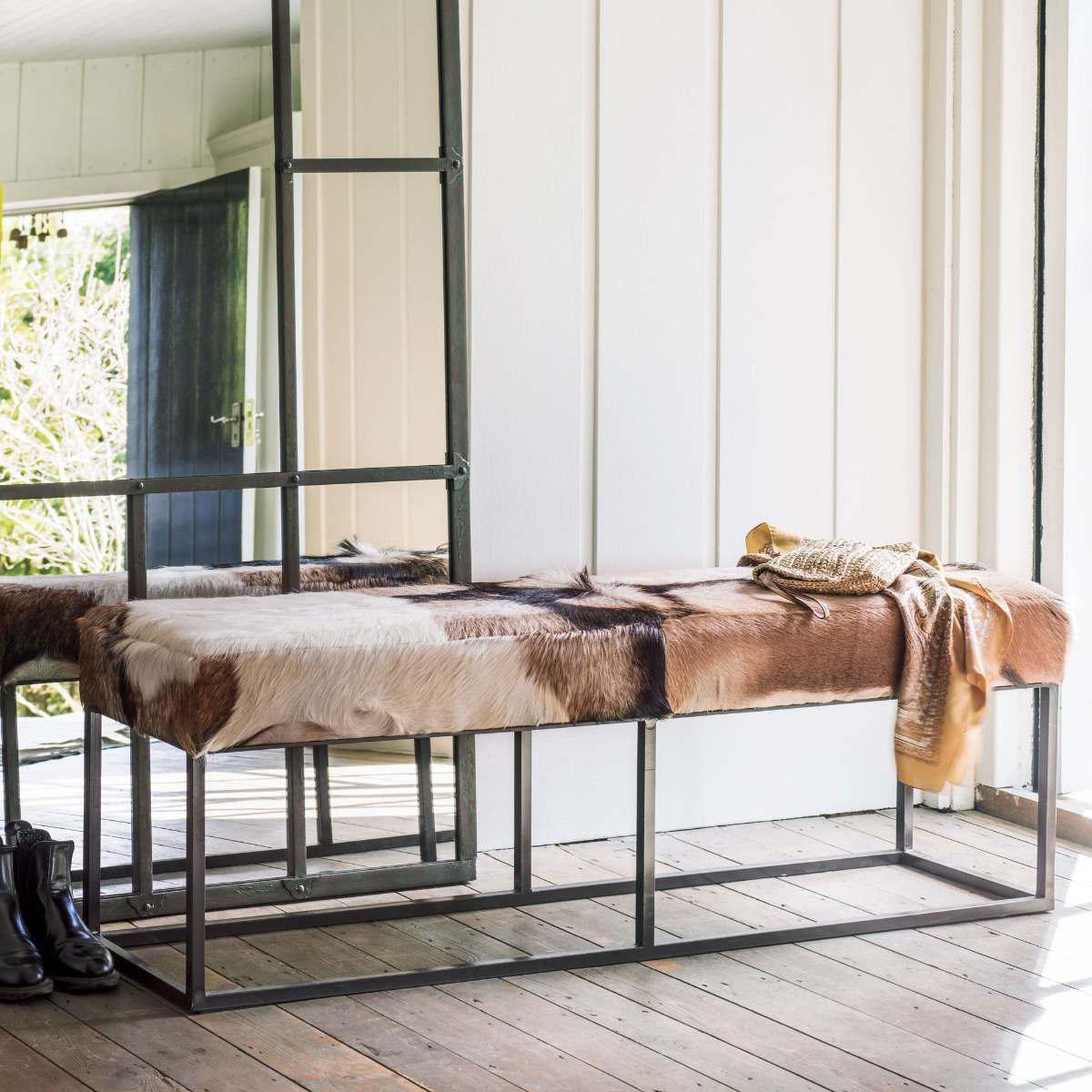 The goat skin bench is a versatile piece that adds texture and warmth to various interiors. I love its natural, earthy aesthetic, which works particularly well in rustic, bohemian, or Scandinavian-inspired spaces. It’s perfect as an entryway stool, extra seating in a living room, or even as a statement piece at the foot of a bed. To style it effectively, consider pairing it with layered rugs or greenery for a cosy feel, and keep accessories minimal to let the natural hide stand out. Its durable material also makes it practical for daily use, adding a touch of organic texture that elevates any room subtly.