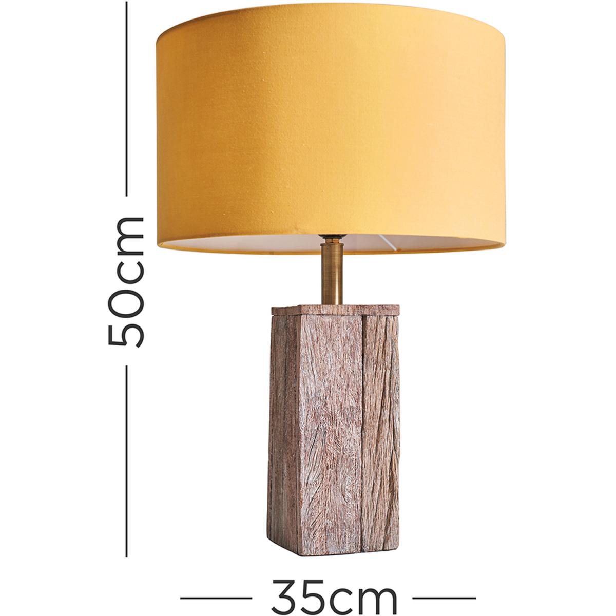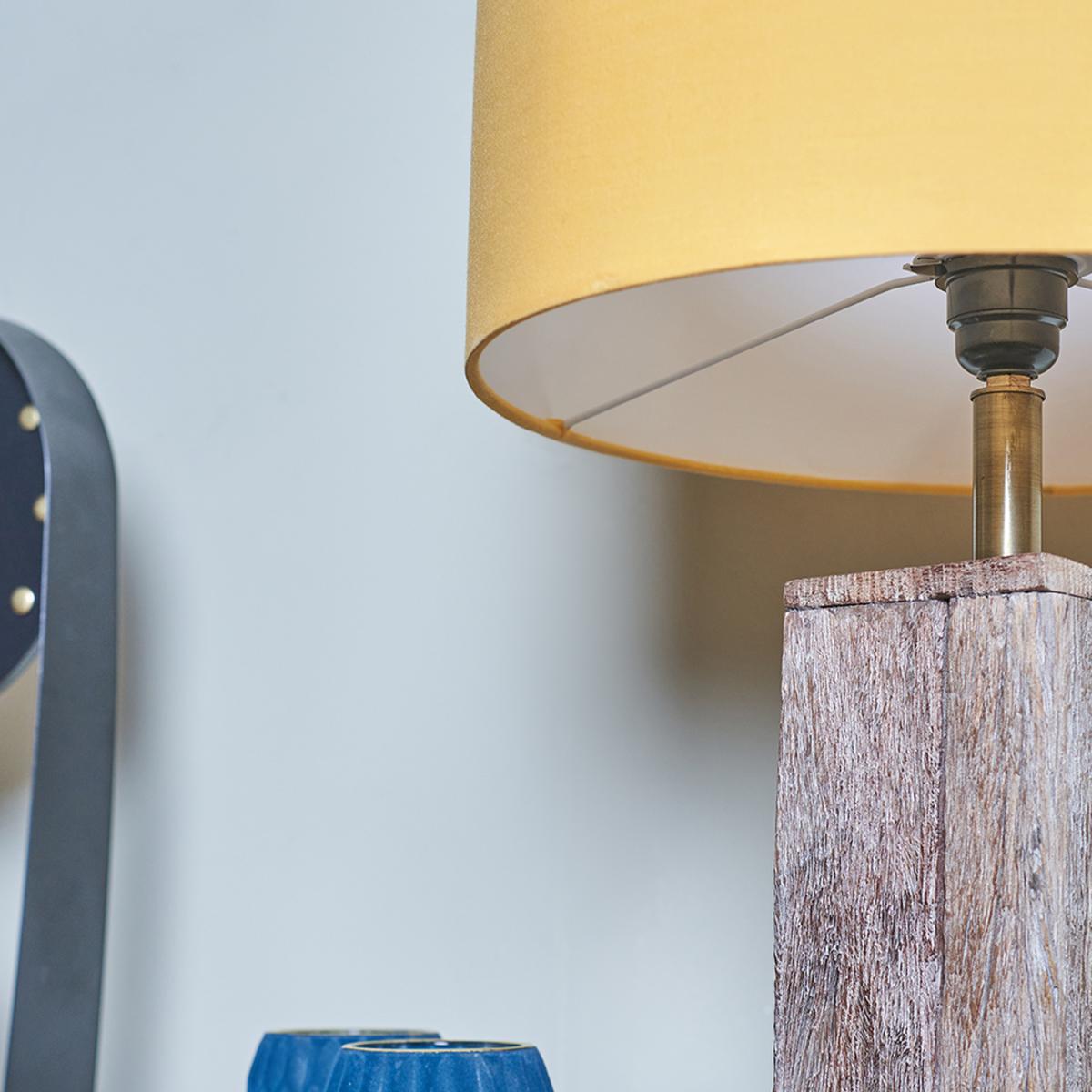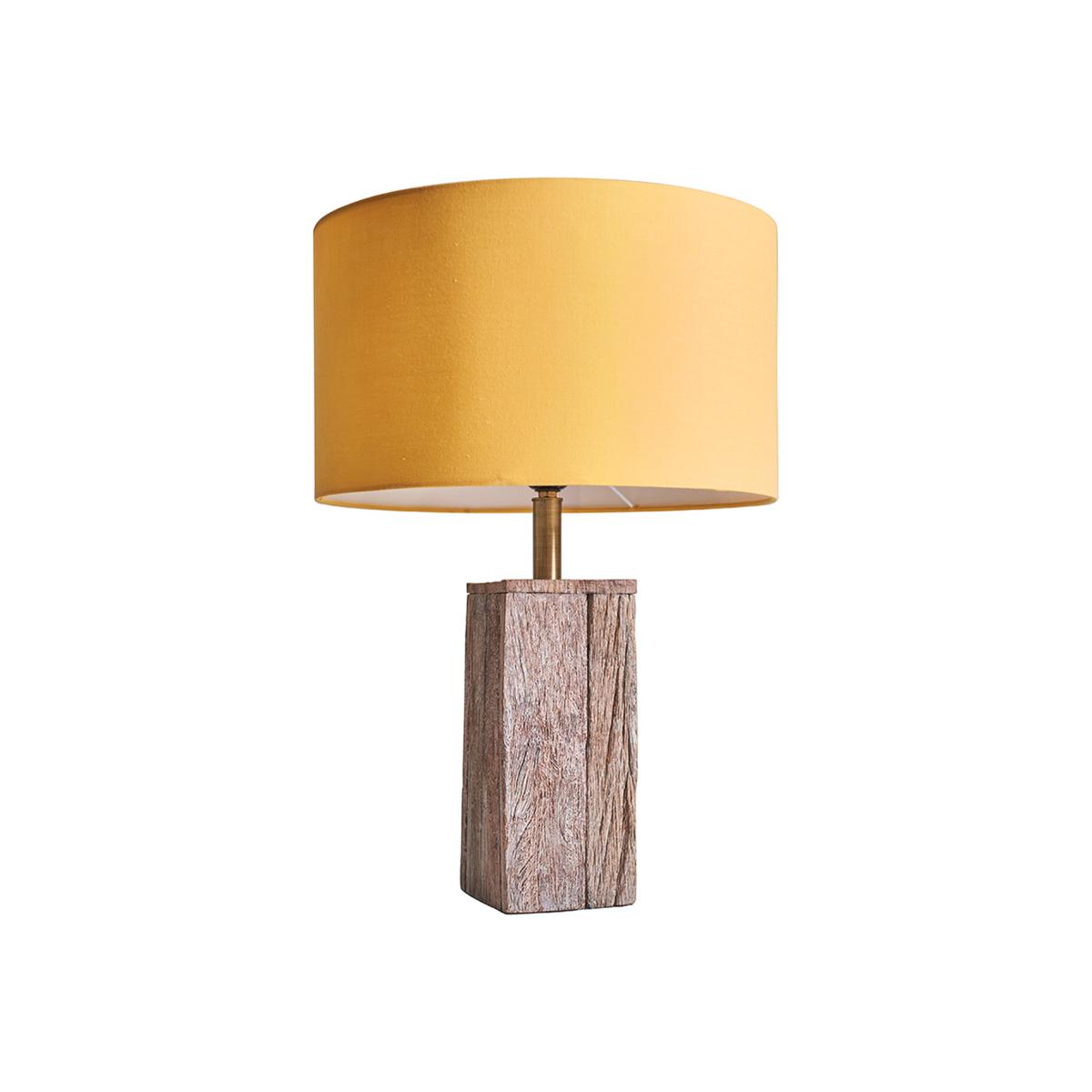 Create a cosy mood with the rustic Goden natural wood block table lamp with mustard Reni shade. The Goden has such a dreamy hand-made feel. The texture of the natural wood of the Goden table lamp brings a modern rustic look to your lighting scheme as well as instant mood lighting. Use on sideboards or as a bedside table lamp to give a relaxing cottage-like feel Use a warm bulb to add character to your home dcor. Requires one 40W ESE27 bulb or LED equivalent