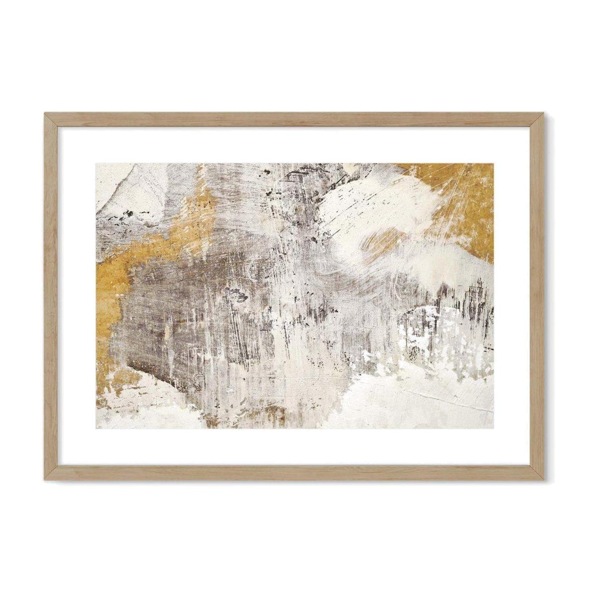 Dimensions W104x H74x D2 cmA contemporary framed abstract art print. This eye-catching design perfectly complements a variety of home interiors and will add a unique touch of style to any room in your home. Printed on fine art paper with excellent colour reproduction and fade resistance. The artwork comes framed and ready to hang in a solid wood frame with oak finish and a white mount included. Features. Ready to hang solid wood framed print Real glass front High quality fine art paper. Made using eco-friendly materials including wood from sustainable forests. Produced in the UKAssembly not required..