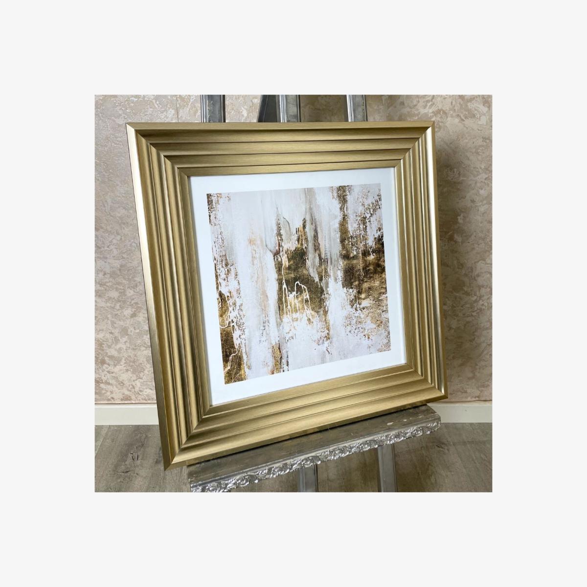 Square abstract gold wall art with chunky champagne gold frame. A striking and sophisticated piece that adds a touch of modern elegance to your space, this artwork features an intriguing abstract design in shimmering gold and white tones, creating a sense of depth and allure on your wall. Encased in the luxurious champagne gold frame, the artwork becomes a bold focal point in any room, enhancing the ambiance with its contemporary flair and eye-catching style. Whether displayed in a living room, dining area or hallway, this wall art brings a sense of glamour and sophistication to your home decor. Square abstract gold wall art with chunky champagne gold frame. A striking and sophisticated piece that adds a touch of modern elegance to your space, this artwork features an intriguing abstract design in shimmering gold and white tones, creating a sense of depth and allure on your wall. Encased in the luxurious champagne gold frame, the artwork becomes a bold focal point in any room, enhancing the ambiance with its contemporary flair and eye-catching style. Whether displayed in a living room, dining area or hallway, this wall art brings a sense of glamour and sophistication to your home decor.