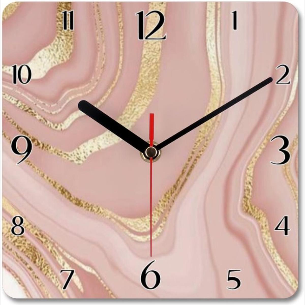 Pink and gold design wall clock. Add a finishing touch to your home furnishings with this beautiful wall clock pink and gold complimenting each other. Requires one AA battery not included. Silent non ticking.
