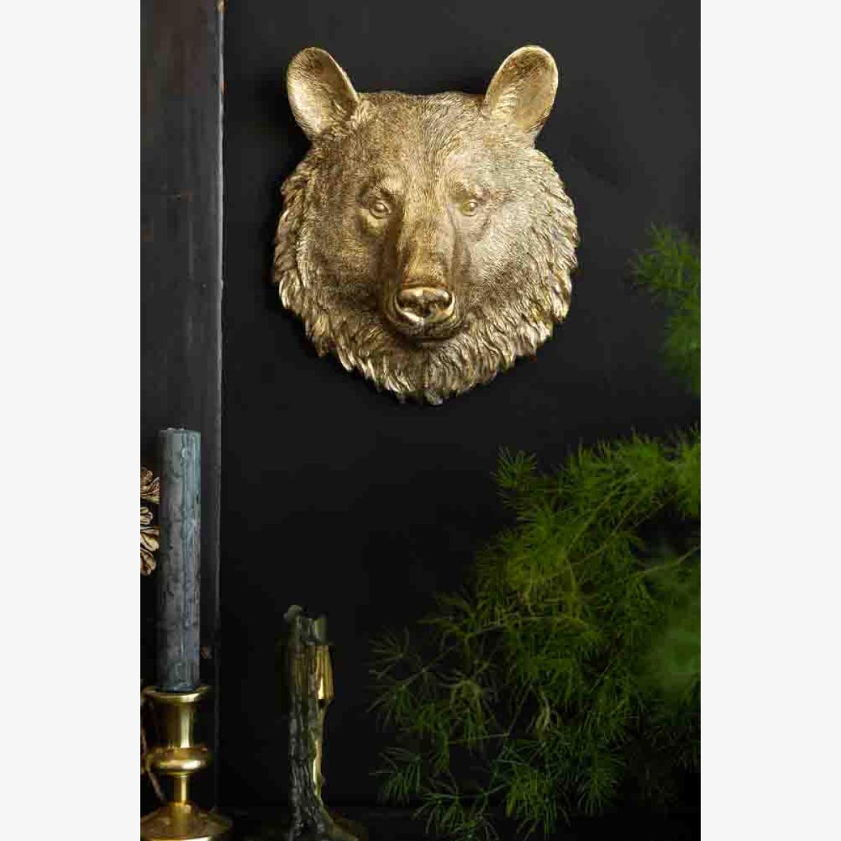 The Gold Bear Wall Ornament is a captivating statement piece, bringing the wild beauty of nature to your home. Featuring a bear's head in a radiant gold hue, it evokes drama and elegance. The intricate detailing captures the power of a bear, while its bold features and textured fur make it a true work of art. If you're looking to add the call of the wild to your home, the Gold Bear Wall Ornament is perfect for you. - Gold Bear Wall Ornament - Measures: 18.5cm x 8cm x 21cm - Material: Polyresin
