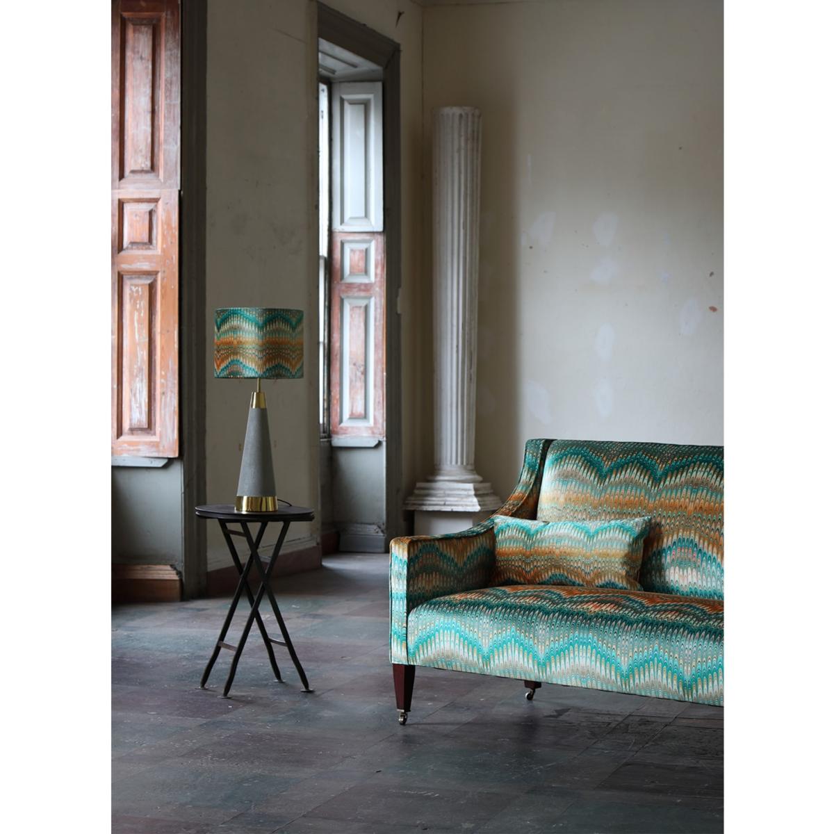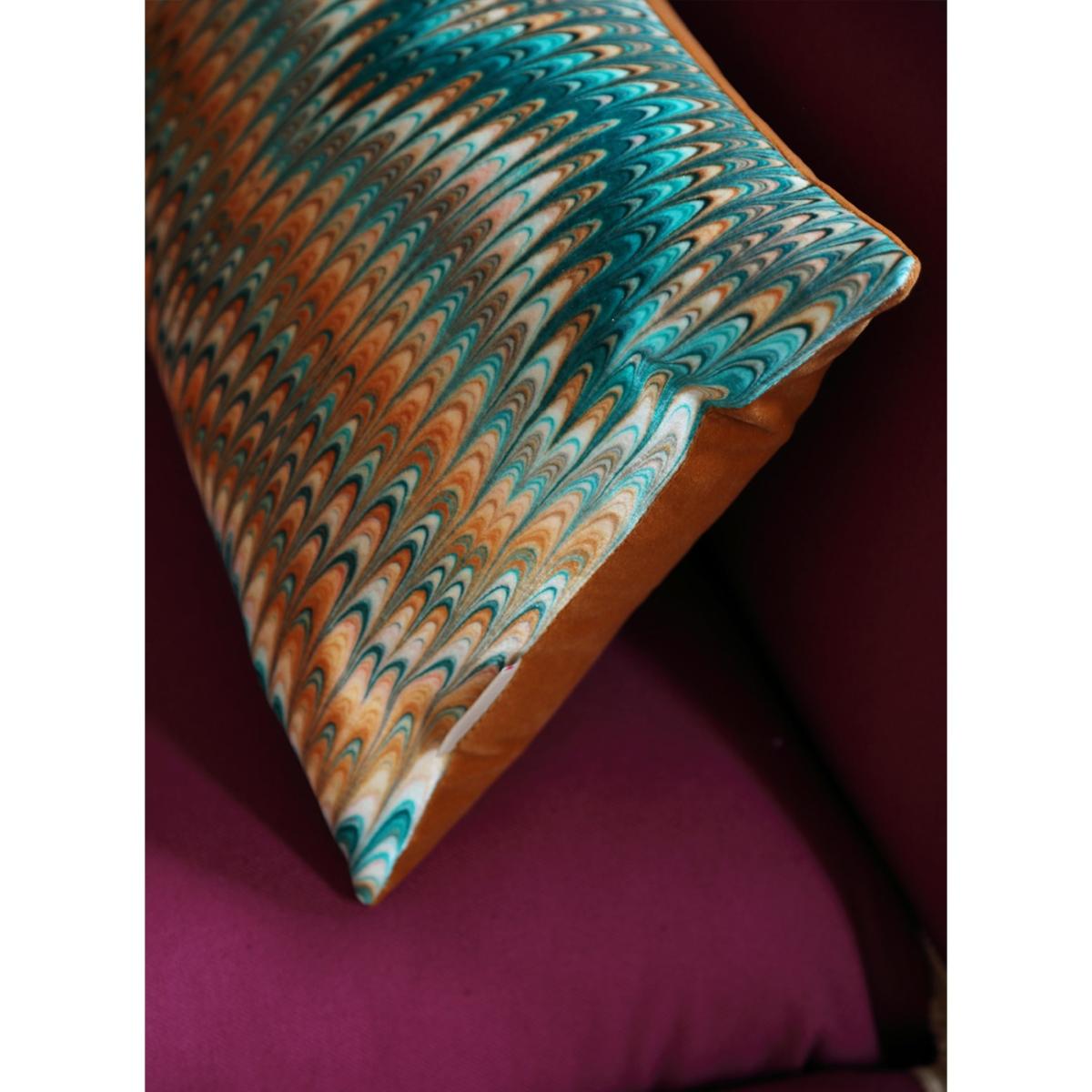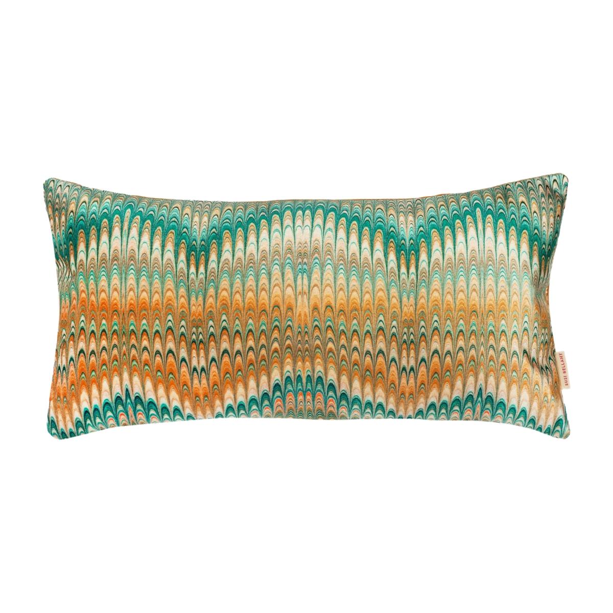 Oblong cushions are a perfect addition to any living room or bedroom and this new design of Saffron Plumes offers a beautiful colour palette of ochres, greens and cream which would work beautifully on a neutral sofa or bed. Pair with the matching square to play with scale in your interior. Unpiped and backed in Nutmeg velvet, this cushion would also make a perfect gift! Striving for sustainability and keeping our carbon footprint at a minimum, our cushions are printed in the UK and made by our local artisan makers before being packed up in recycled and recyclable packaging. The inserted cushion pads are made in Norfolk and their duck feathers are ethically and sustainably sourced.