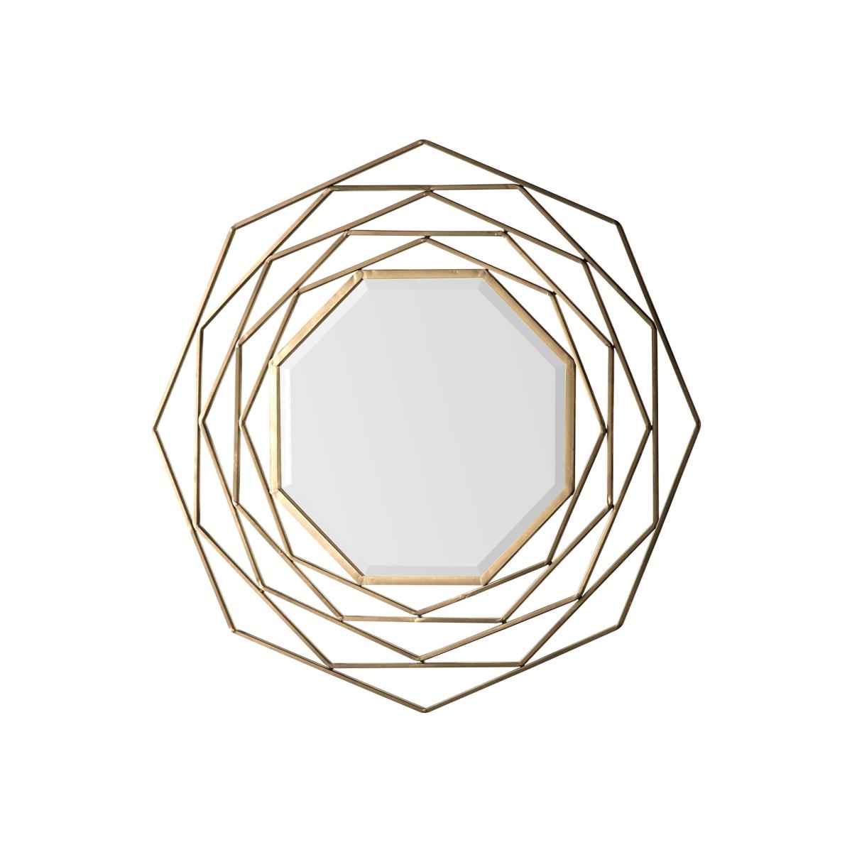 I love this mirror’s contemporary geometric design paired with the understated gold border - it offers a touch of elegance without feeling too ornate. It works particularly well in modern or minimalist interiors, where its clean lines can act as a focal point, but it also blends nicely with eclectic spaces by adding a bit of luxe. Practical styling tips include placing it above a console table or in an entryway to create a welcoming vibe, or using it alongside other metallic accents for a cohesive look. Its versatile shape and finish make it a great choice for brightening up darker rooms or adding a bit of visual interest to an often overlooked wall.