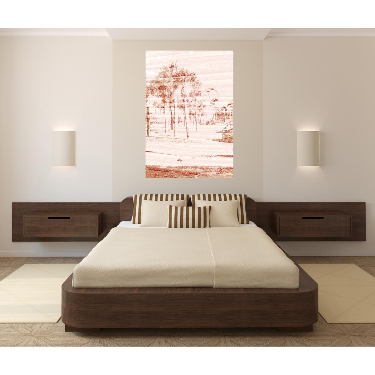 The gold bronze palm print works beautifully in contemporary and modern interiors, adding a touch of warmth and sophistication without overpowering the space. I love how the pink tones soften the overall look, making it versatile for bedrooms or living spaces aiming for a gentle yet stylish statement. When styling, consider pairing it with muted colour schemes or natural textures to let the artwork stand out. Practical tips include hanging it at eye level above a bed or sofa, ensuring it’s central and balanced. Mixing this piece with brass or gold accents can enhance the warm tones, creating a cohesive and inviting atmosphere.