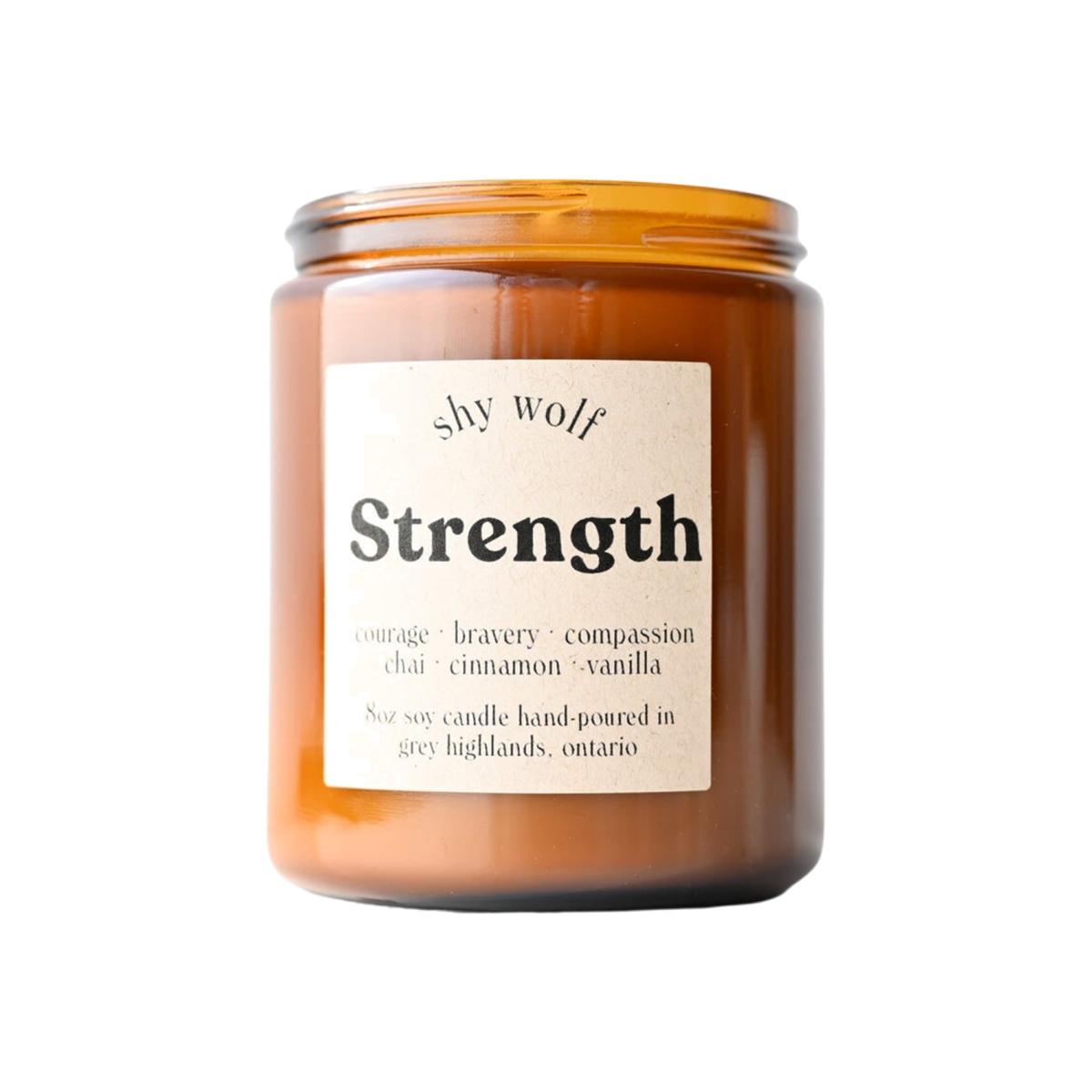 Inspired by the Strength tarot card, representing courage, bravery and compassion. A bold blend of spices to awaken and encourage you to step into your power, knowing the courage and strength in you will always be enough to overcome whatever obstacles dare try to stand in your way. Scent notes: Chai, Cinnamon, Vanilla Our 8 oz candles are made from North American soy wax and burn for 40-50 hours. Hand-poured in Grey Highlands, Ontario, Canada with fine, phthalate-free fragrances. As a company that's run by firefighters and employs family members of first responders, we're extra passionate about fire and candle safety. Follow these tips to get the safest, cleanest and longest-lasting burn from your candles. The first burn is the most important. When lighting your candle for the first time, make sure you wait until the wax has melted evenly across the candle. By ensuring the whole surface has melted before you extinguish your candle, you'll avoid tunnelling and help your candle last longer. Before re-lighting your candle, make sure you trim it to a 1/4 inch to ensure the smoothest possible burn and to ensure the flame doesn't get too high. When there's 1/2 inch of wax left at the end of your jar, it's time to restock! to get the very most use of those last bits of wax, you can pop your candle in the freezer, chip out the remaining wax with a spoon, and melt it in a wax melter. Don't leave your candles unattended or light them before falling asleep. a watched fire is a safe fire. Make sure your candle is out of reach of kids, pets, and your friend who becomes a bit of a pyromaniac after a few drinks. Made in Canada