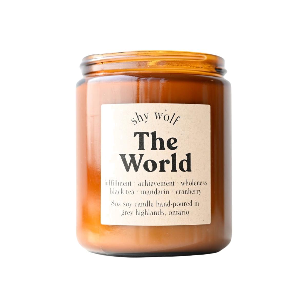 Inspired by The World tarot card, representing fulfillment, achievement and wholeness. Smells like stepping into a new adventure; coming face to face with your most aligned self and walking hand in hand together towards your destiny. Scent notes of Black Tea, Mandarin, Cranberry Our 8 oz candles are made from North American soy wax and burn for 40-50 hours. Hand-poured in Grey Highlands, Ontario, Canada with fine, phthalate-free fragrances. As a company that's run by firefighters and employs family members of first responders, we're extra passionate about fire and candle safety. Follow these tips to get the safest, cleanest and longest-lasting burn from your candles. The first burn is the most important. When lighting your candle for the first time, make sure you wait until the wax has melted evenly across the candle. By ensuring the whole surface has melted before you extinguish your candle, you'll avoid tunnelling and help your candle last longer. Before re-lighting your candle, make sure you trim it to a 1/4 inch to ensure the smoothest possible burn and to ensure the flame doesn't get too high. When there's 1/2 inch of wax left at the end of your jar, it's time to restock! to get the very most use of those last bits of wax, you can pop your candle in the freezer, chip out the remaining wax with a spoon, and melt it in a wax melter. Don't leave your candles unattended or light them before falling asleep. a watched fire is a safe fire. Make sure your candle is out of reach of kids, pets, and your friend who becomes a bit of a pyromaniac after a few drinks. Made in Canada